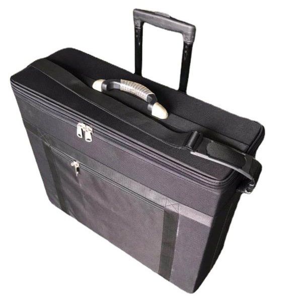 Чемодан на колёсиках, с выдвижной ручкой. Удобен в транспортировке. Используется в салонах оптики, и выездными курьерами для перевозки и демонстрации очков и оправ. Подходит для деловых поездок, выставок и т.п.