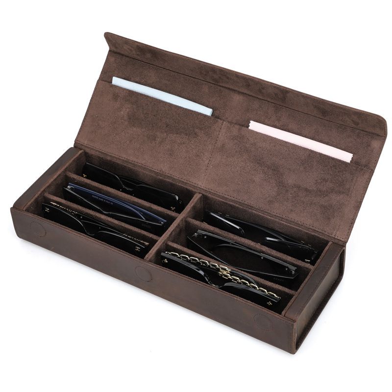 Sunglasses and eyeglasses genuine leather case with 6 slots CF4012