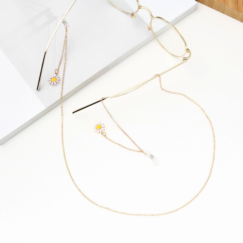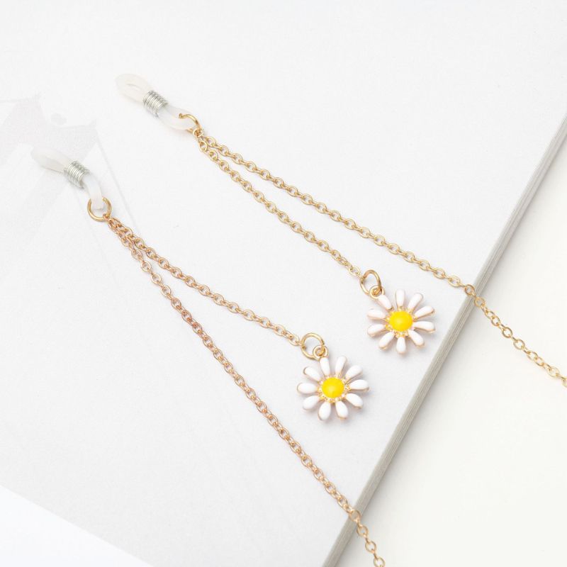 Металлическая нескользящая цепочка золотого цвета, с цветком ромашки, для очков и масок GA021