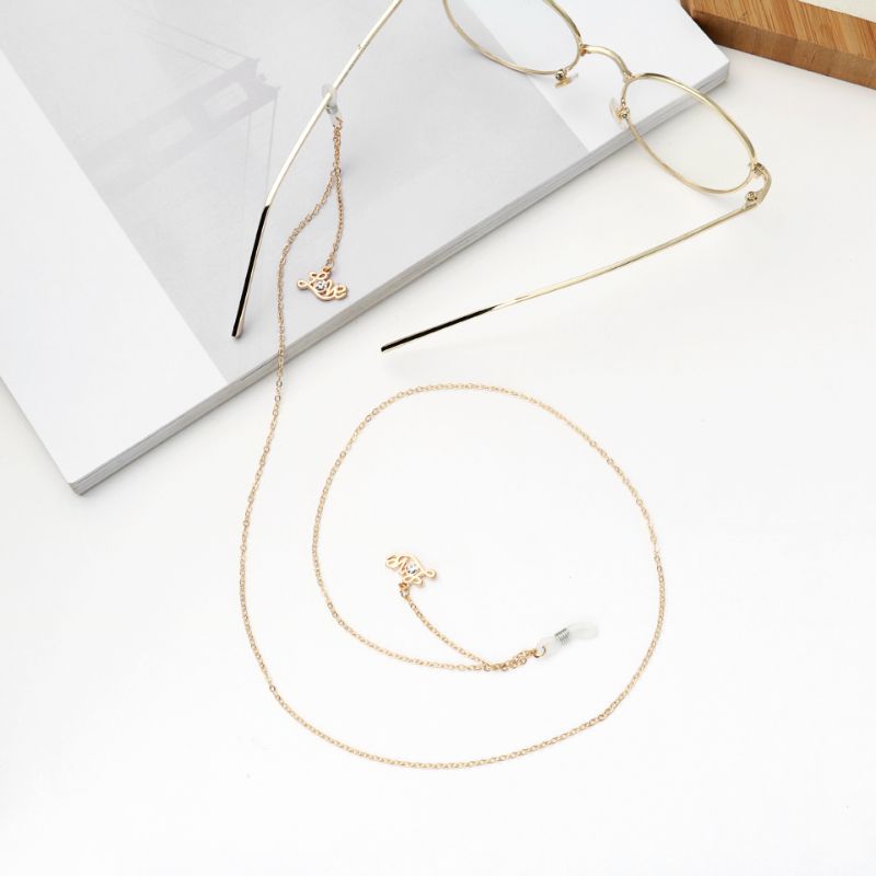 Металлическая нескользящая цепочка золотого цвета, с текстом LOVE и стразами, для очков и масок GA030