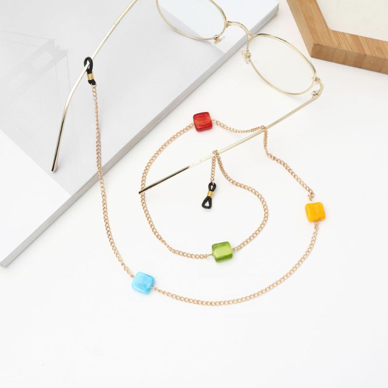 Металлическая нескользящая цепочка золотого цвета, с цветными бусинами, для очков и масок GA047