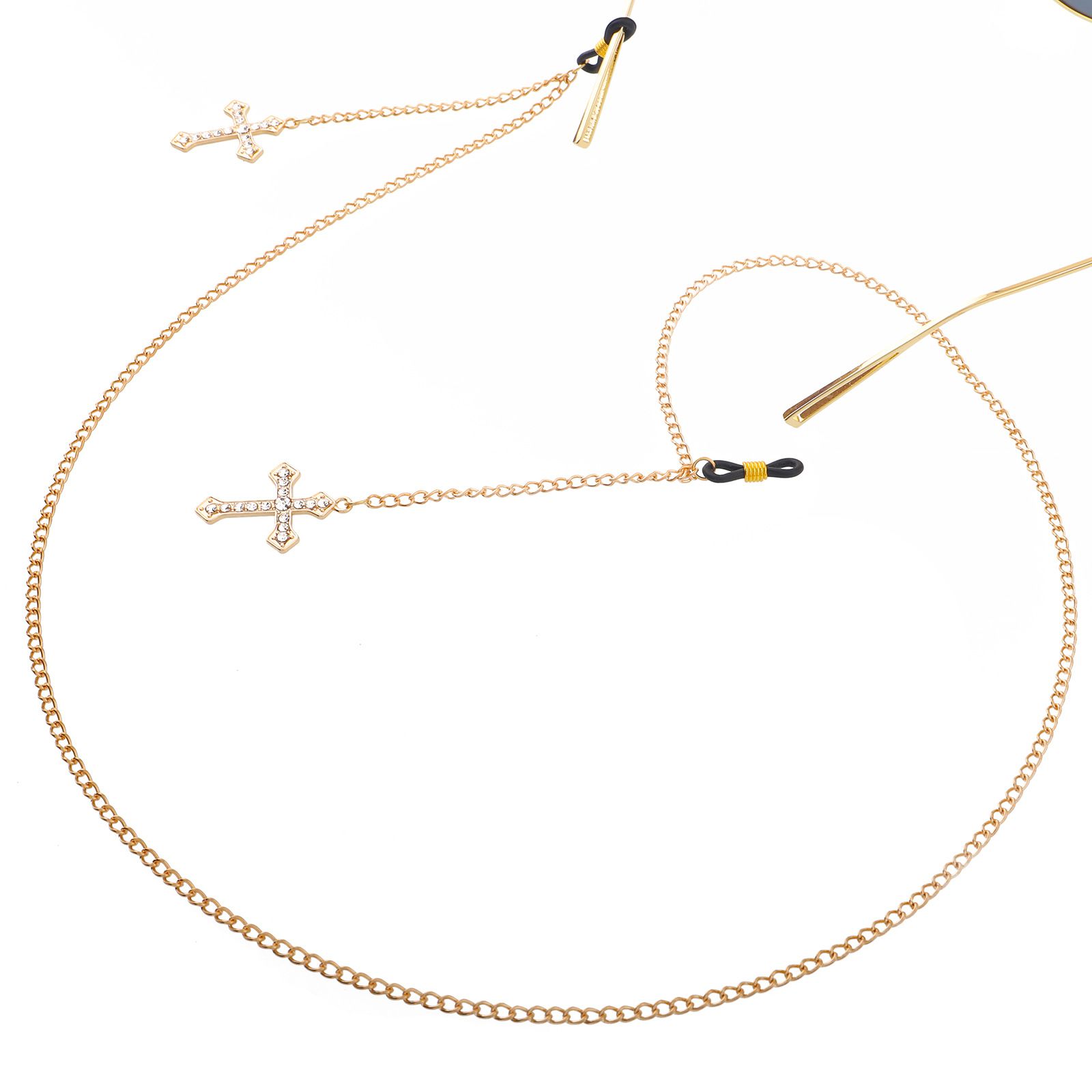 Металлическая нескользящая цепочка, золотого цвета, с подвеской крест со стразами, для очков и масок GL022