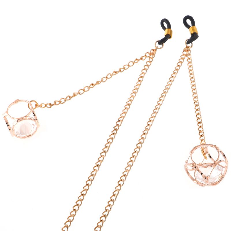 Металлическая нескользящая цепочка золотого цвета, с подвеской с полыми стразами, для очков и масок GL027