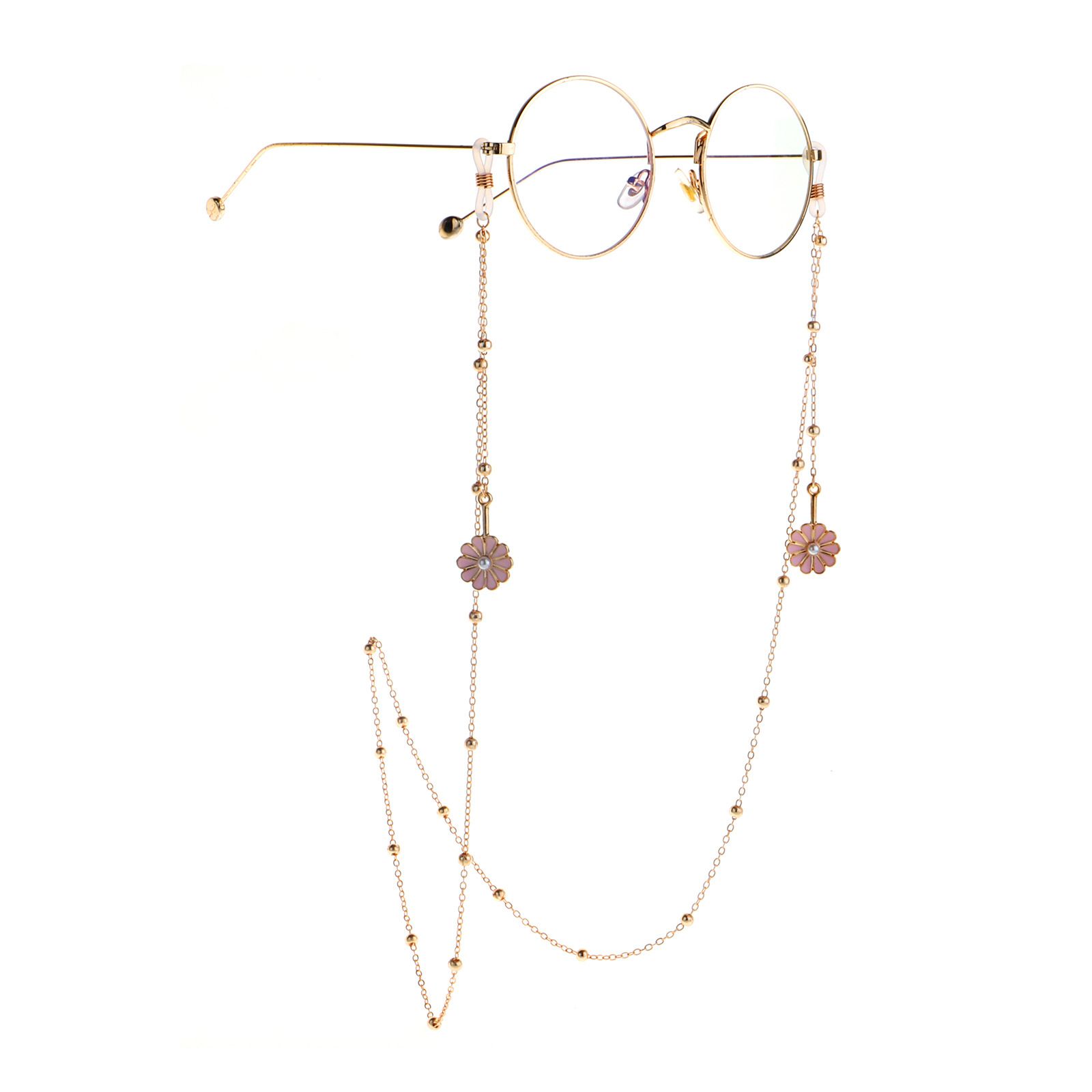 Металлическая нескользящая цепочка золотого цвета, с подвеской розовая ромашка и бусинами, для очков и масок GL1022-1