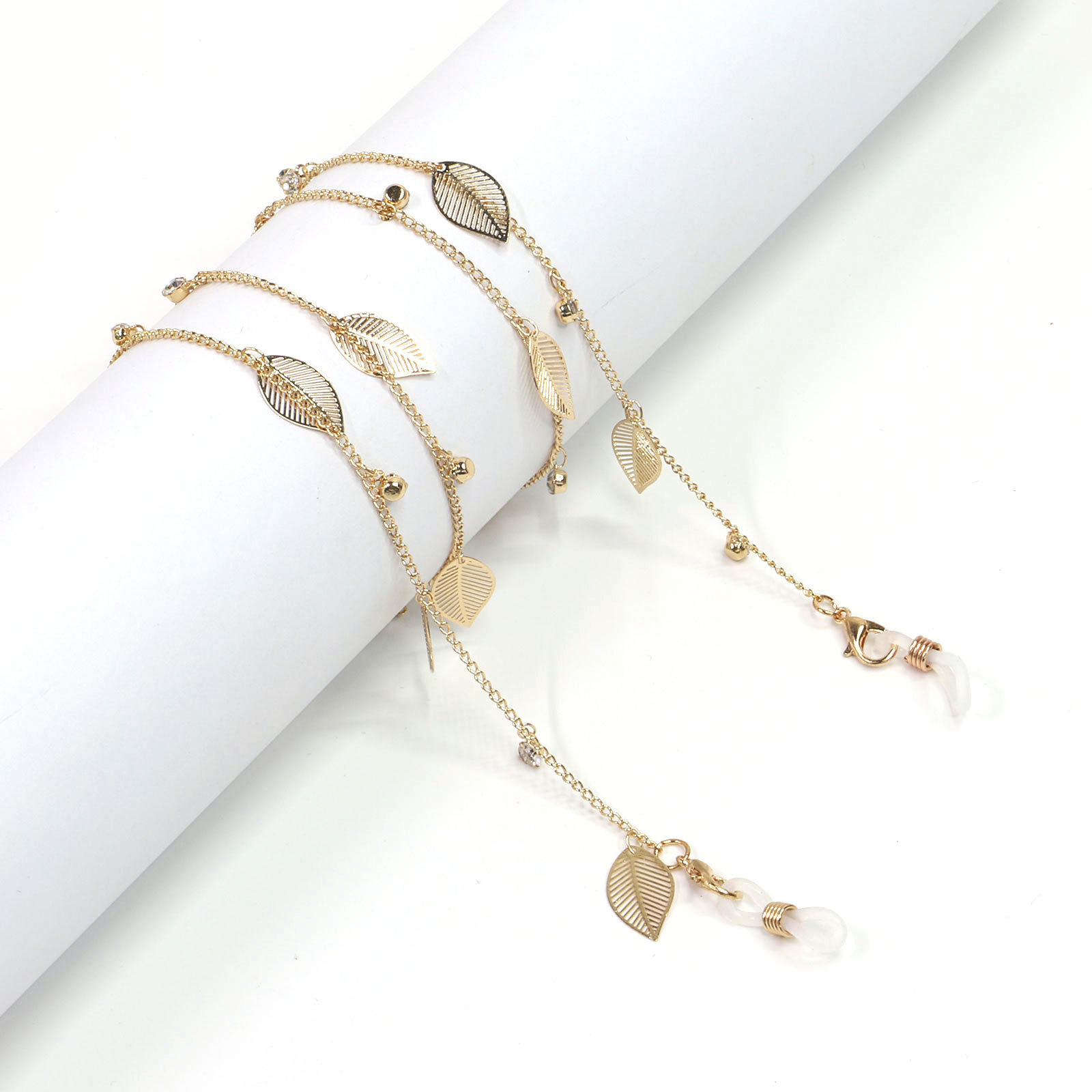 Металлическая цепочка для очков с декоративными элементами листья GL1059