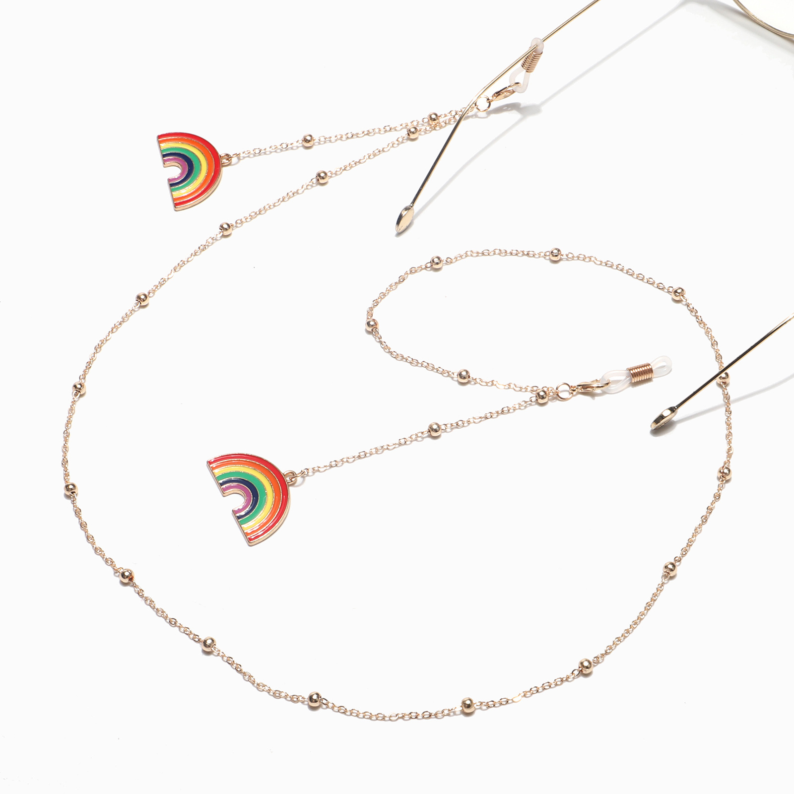 Металлическая цепочка для очков с бусинами и кулоном радуга GL1104