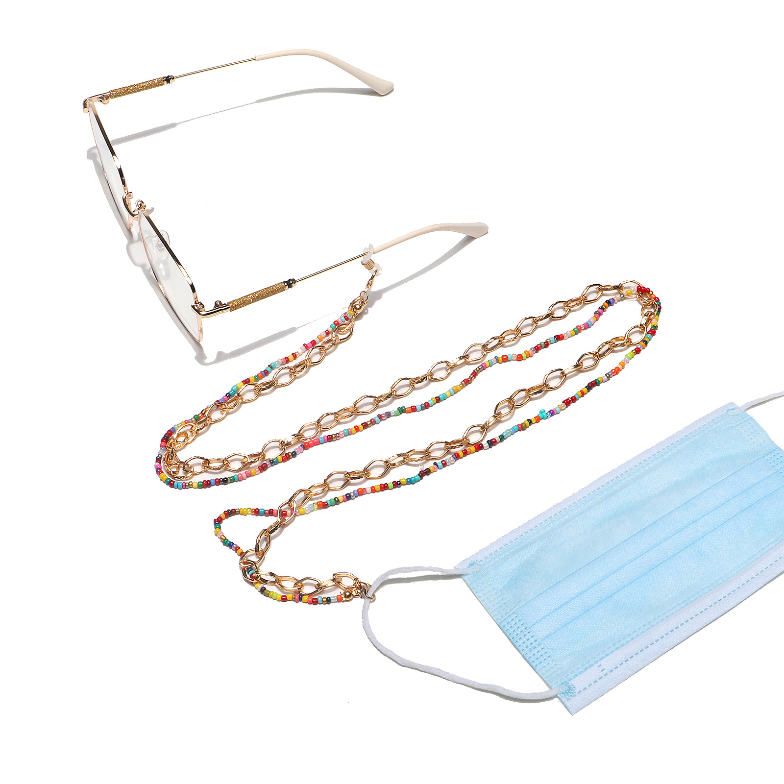 Двойная акриловая и металлическая цепочка для очков и масок с бусинами GL1160