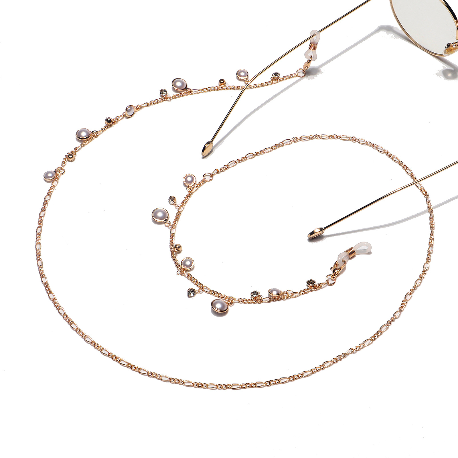 Цепочка для очков с жемчугом и стразами GL1227