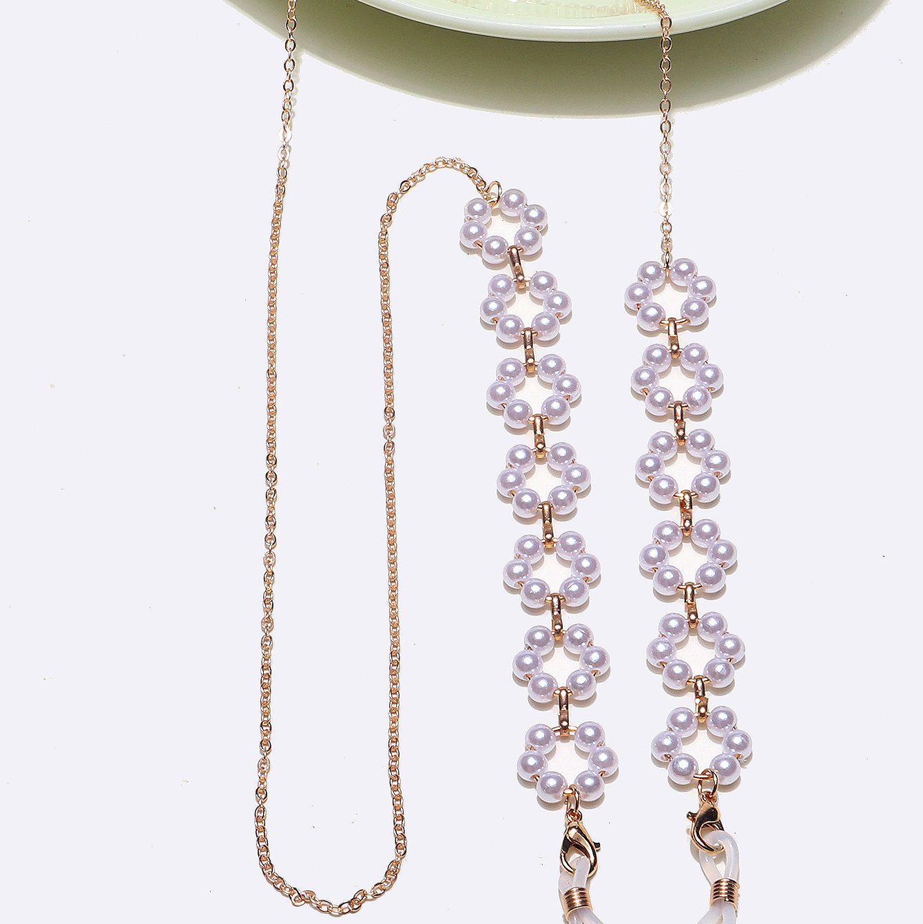 Металлическая нескользящая цепочка золотого цвета, с жемчугом, для очков и масок GL1393