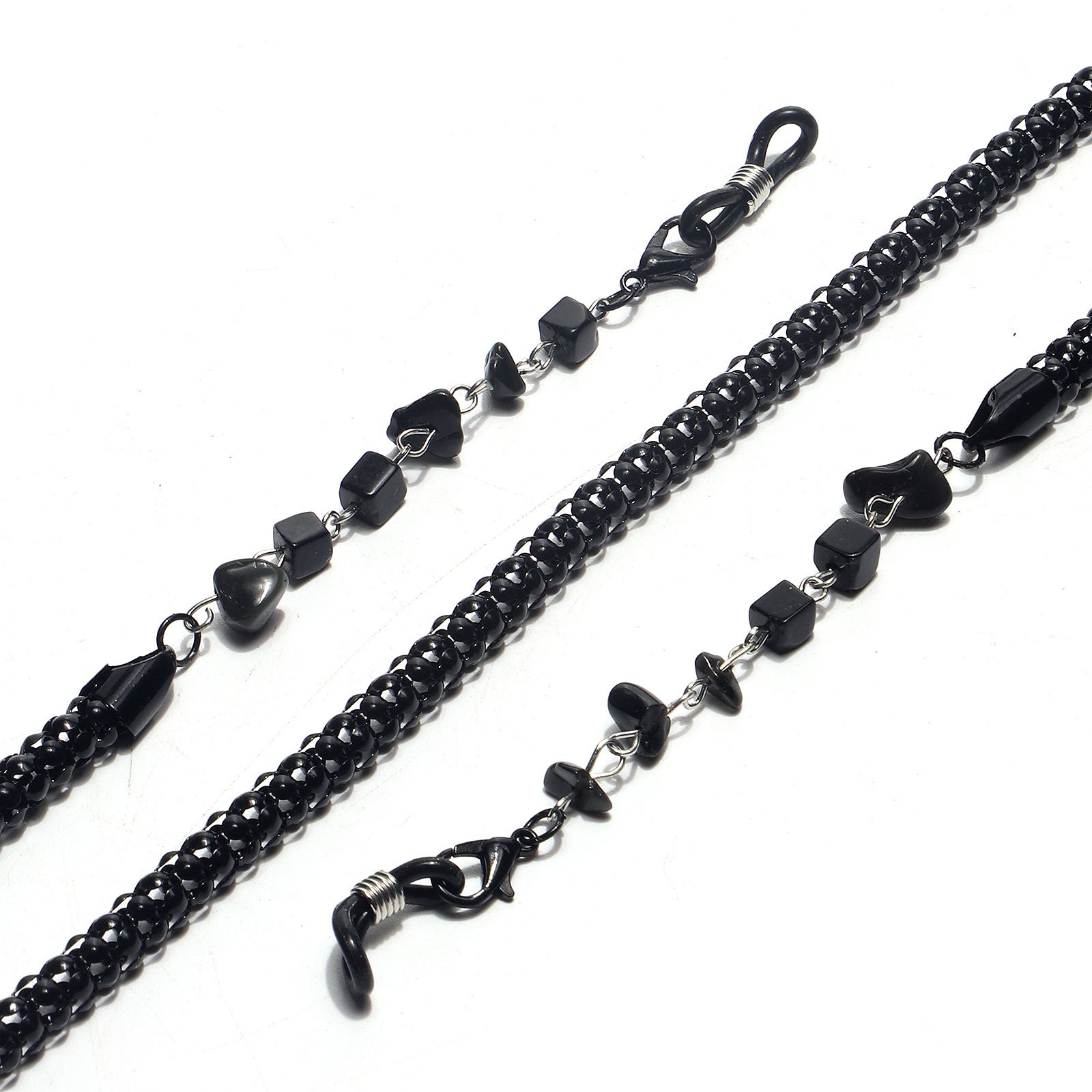 Металлическая нескользящая цепочка черного цвета, толщина 6 мм с натуральным камнем, для очков и масок GL1439