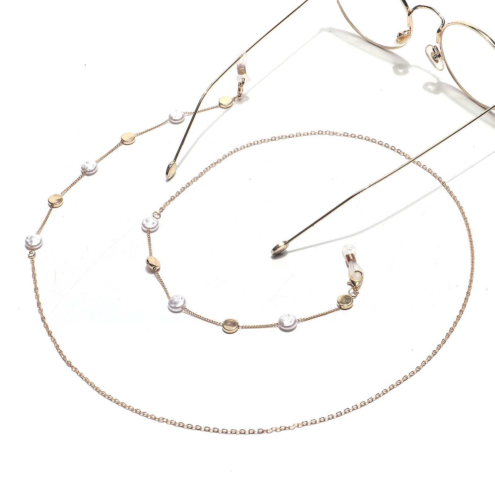 Металлическая нескользящая цепочка золотого цвета, с круглым жемчугом, для очков и масок GL1440