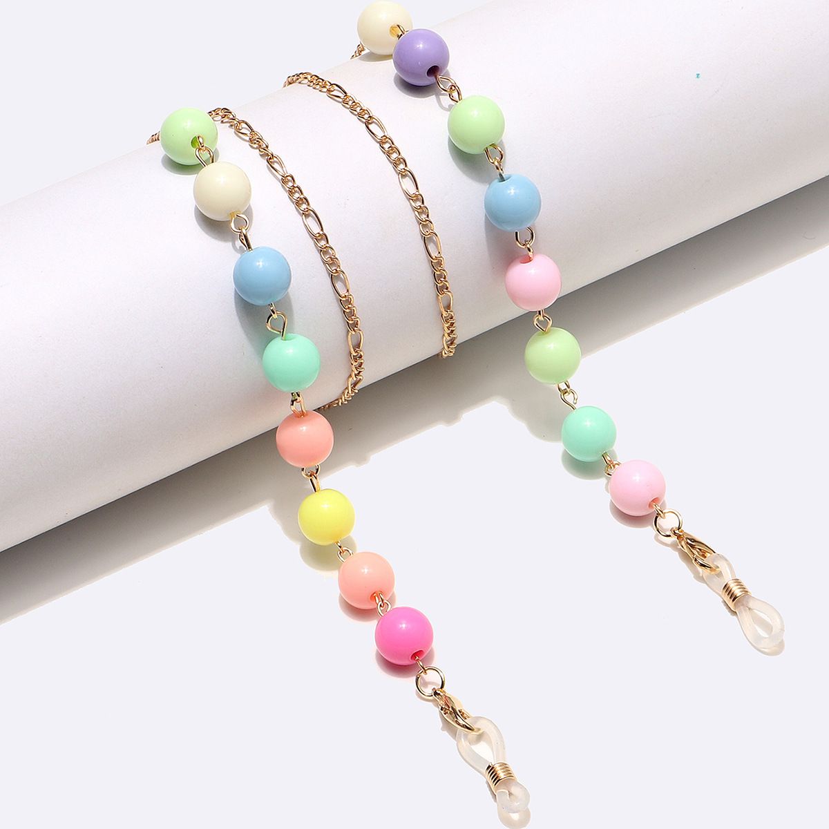 Металлическая нескользящая цепочка золотого цвета, с цветными бусинами, для очков и масок GL1449