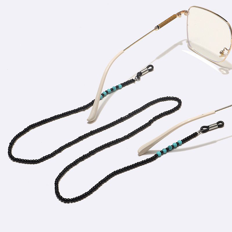 Пластиковая нескользящая цепочка из бусин черного цвета, для очков и масок GL1474