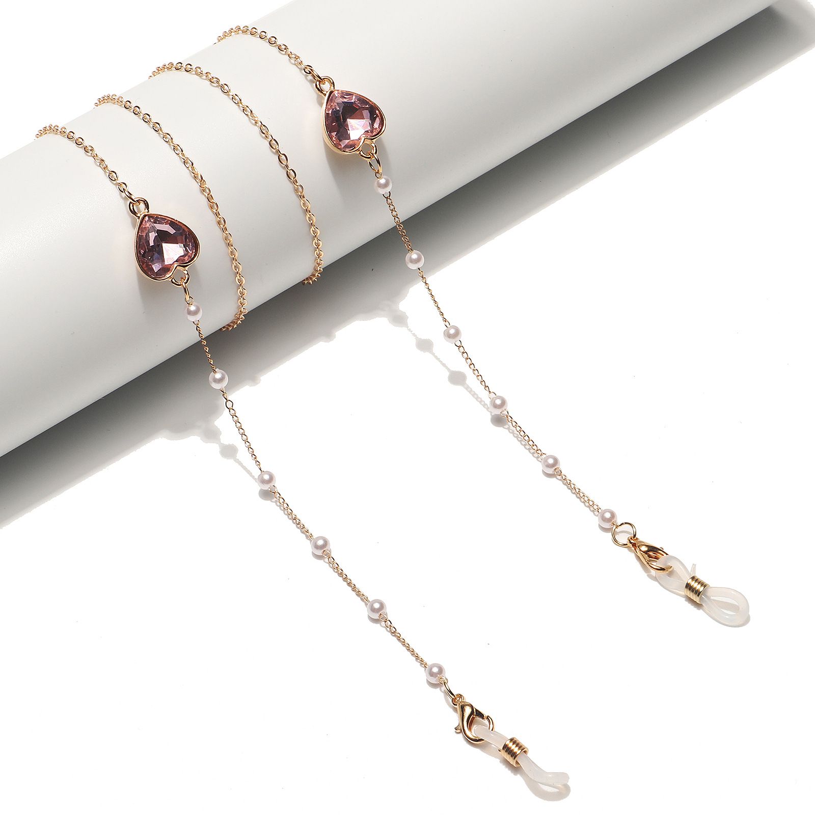 Металлическая нескользящая цепочка золотого цвета, с сердцем из кристалла и жемчугом, для очков и масок GL1503