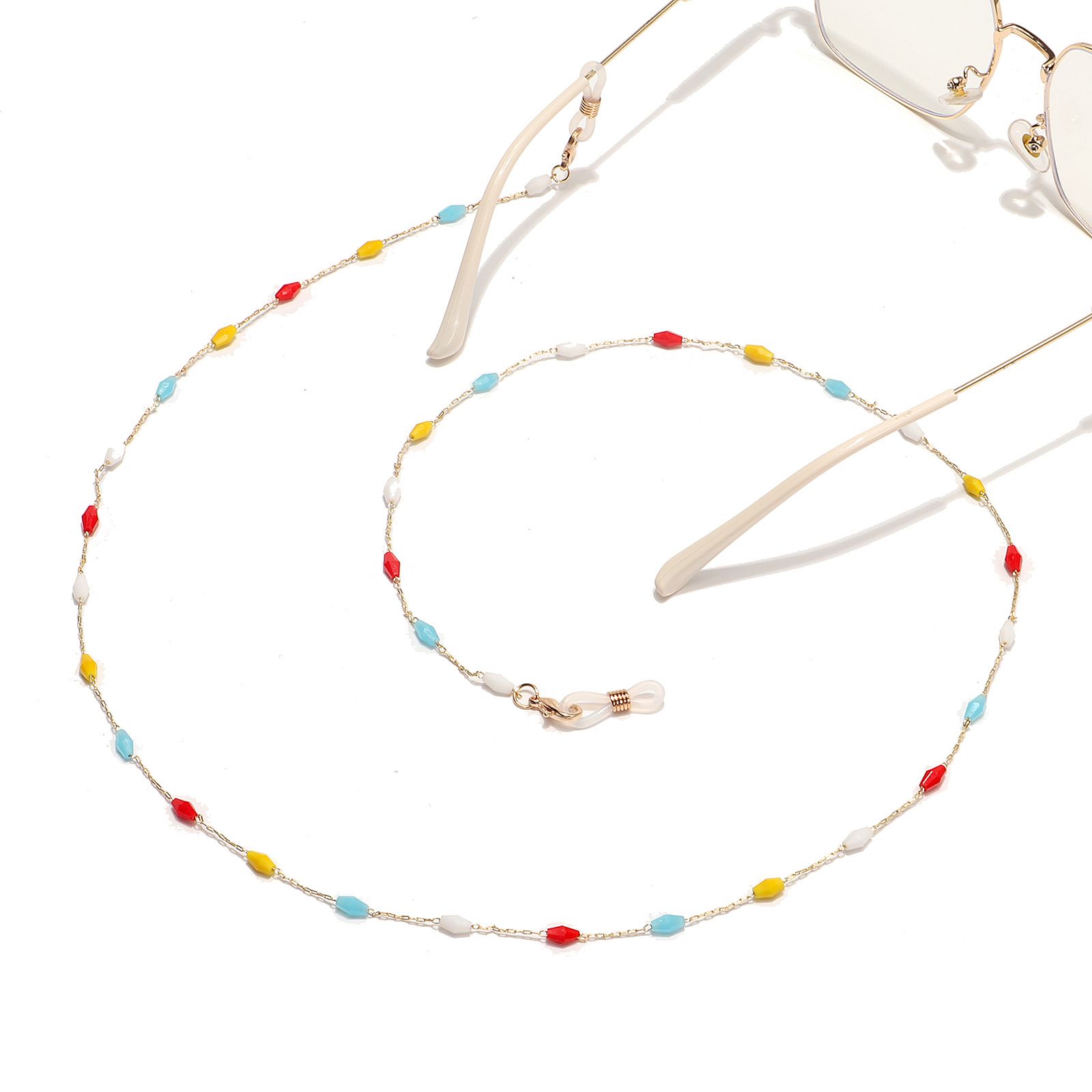 Металлическая нескользящая цепочка золотого цвета, с цветными бусинами, для очков и масок GL1517