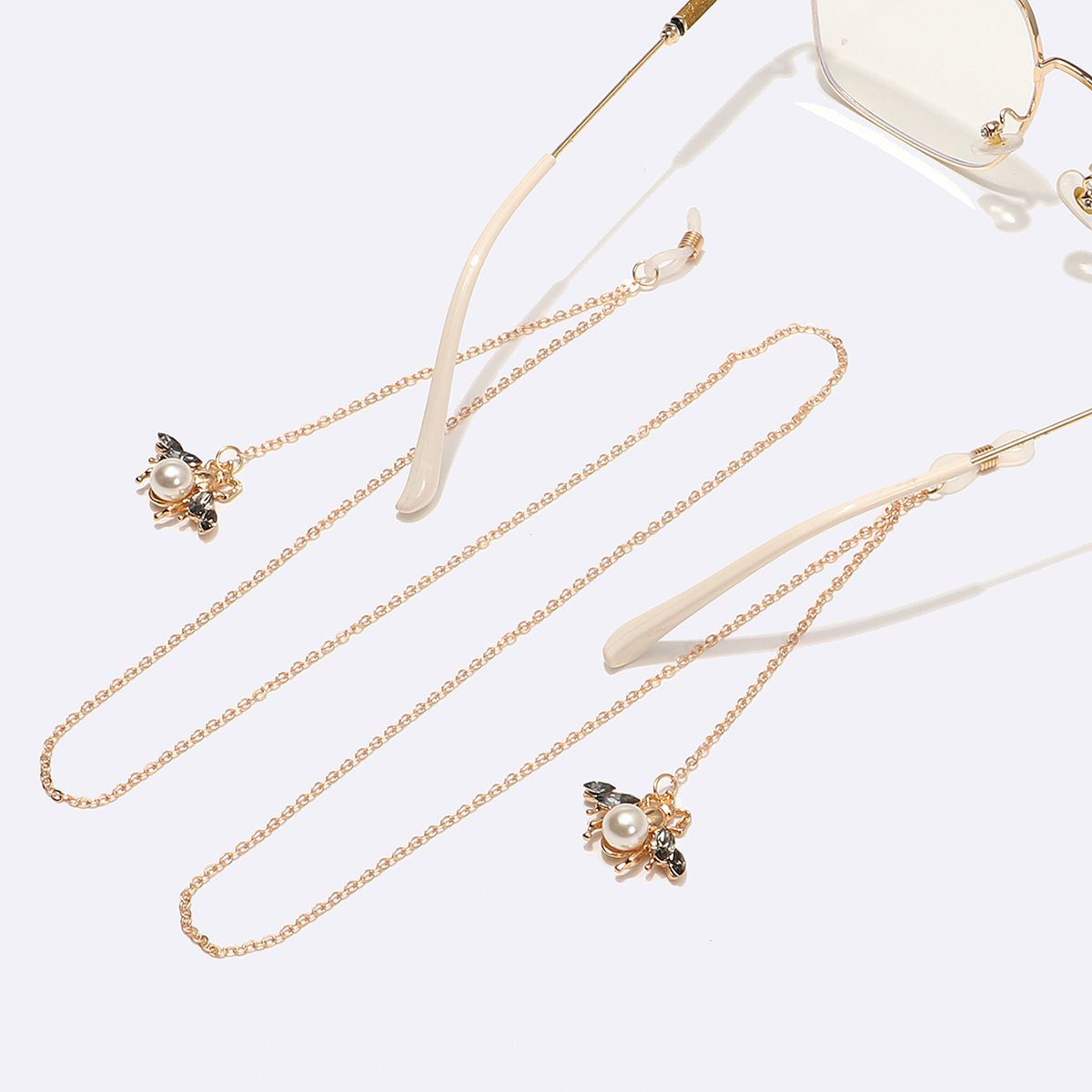 Металлическая нескользящая цепочка золотого цвета, с подвеской пчела с жемчугом, для очков и масок GL1528