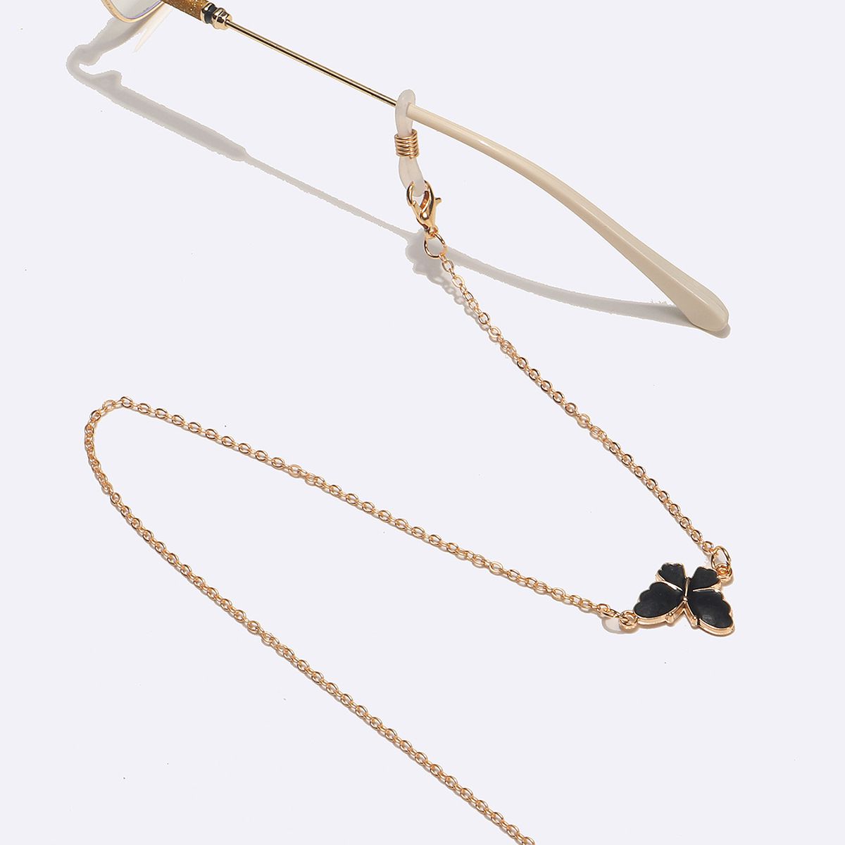 Металлическая нескользящая цепочка золотого цвета, с черной бабочкой, для очков и масок GL1561