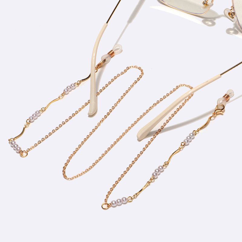 Металлическая нескользящая цепочка золотого цвета, с жемчугом, для очков и масок GL1571