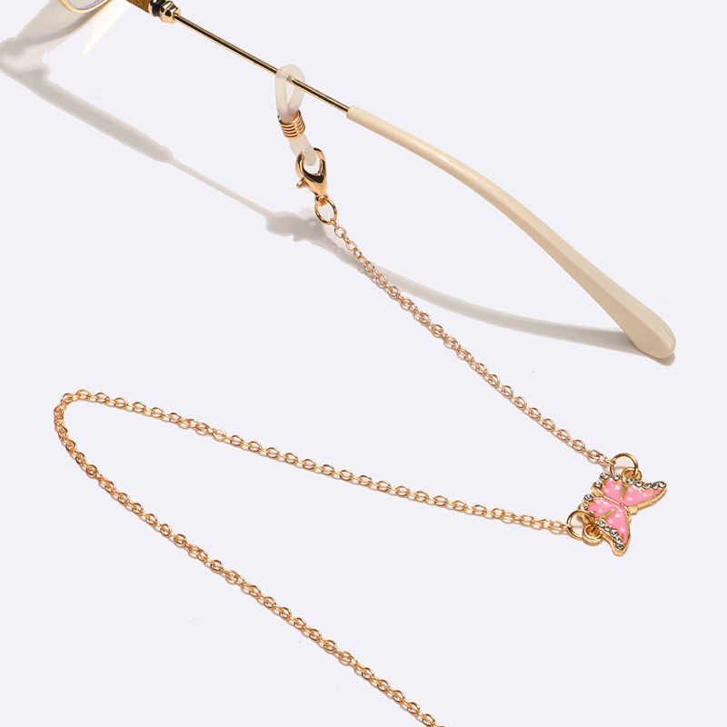 Металлическая нескользящая цепочка золотого цвета, с розовой бабочкой, для очков и масок GL1576