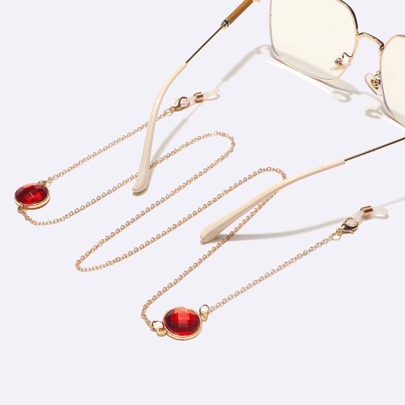 Металлическая нескользящая цепочка золотого цвета, с красными кристаллами, для очков и масок GL1604