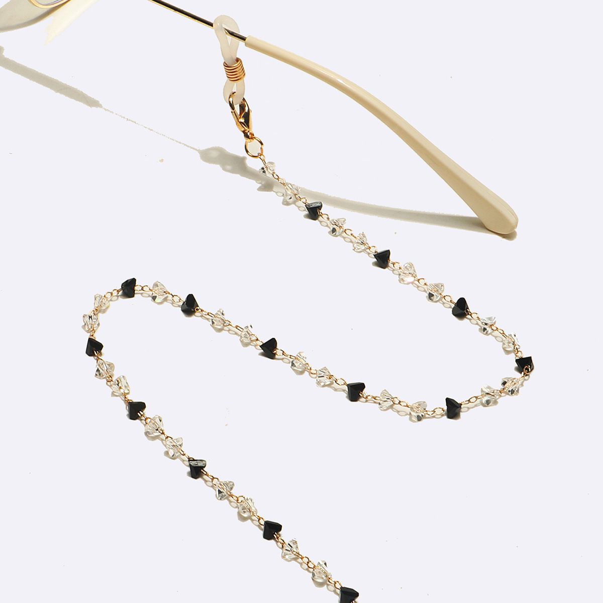 Металлическая нескользящая цепочка золотого цвета, с черными и белыми кристаллами, для очков и масок GL1639