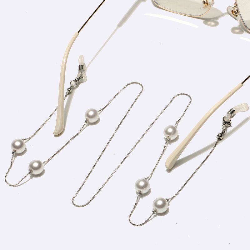 Металлическая нескользящая цепочка серебряного цвета, с жемчугом, для очков и масок GL1690