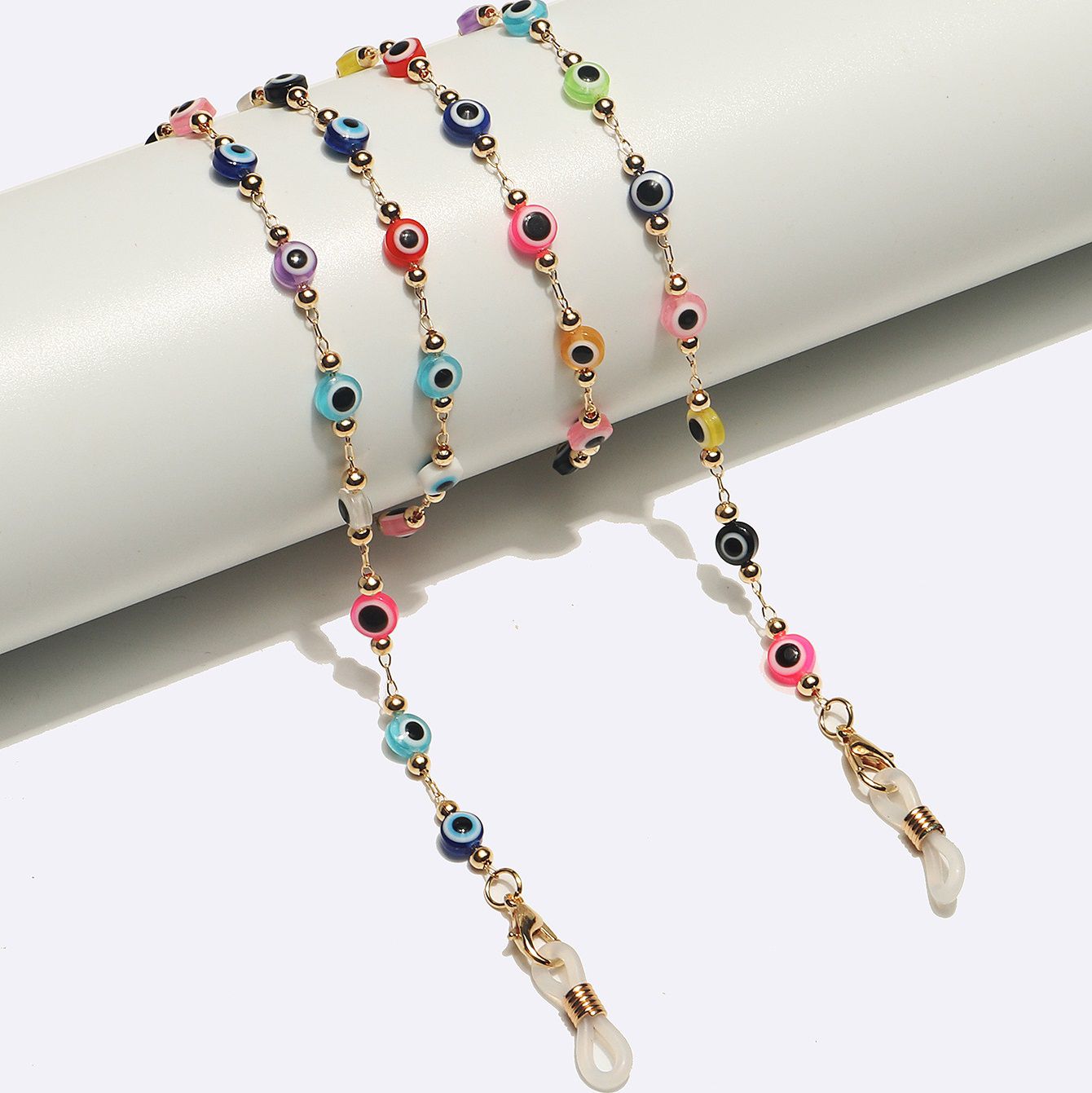 Металлическая нескользящая цепочка золотого цвета, с цветными глазами, для очков и масок GL1706