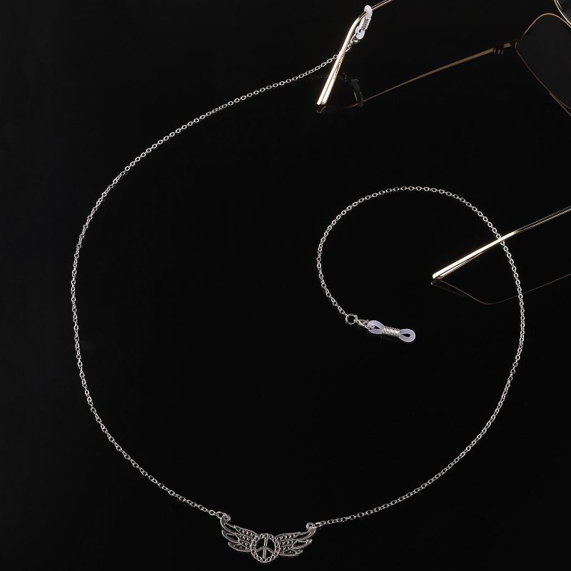 Металлическая нескользящая цепочка серебряного цвета, с крыльями мира, для очков и масок GL207