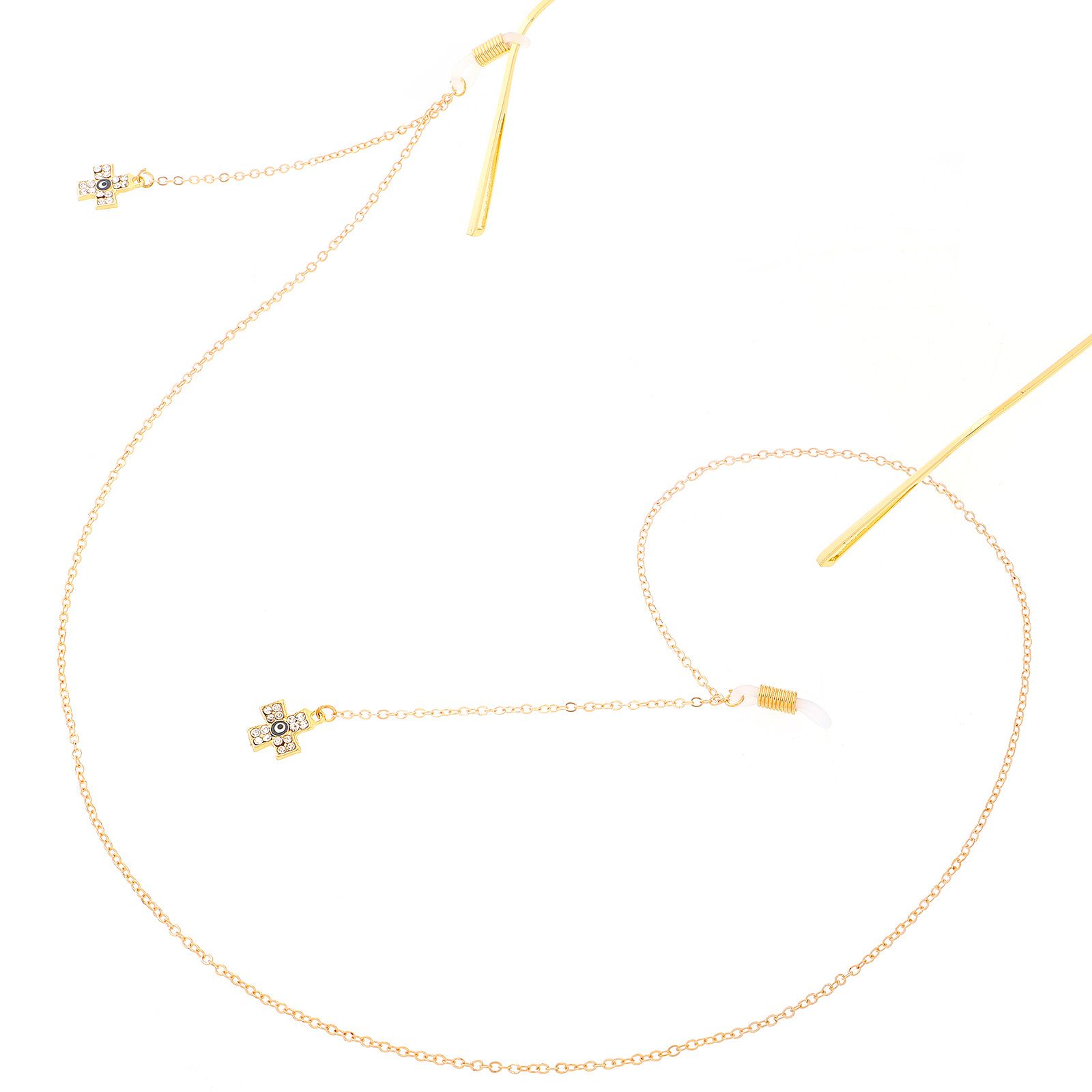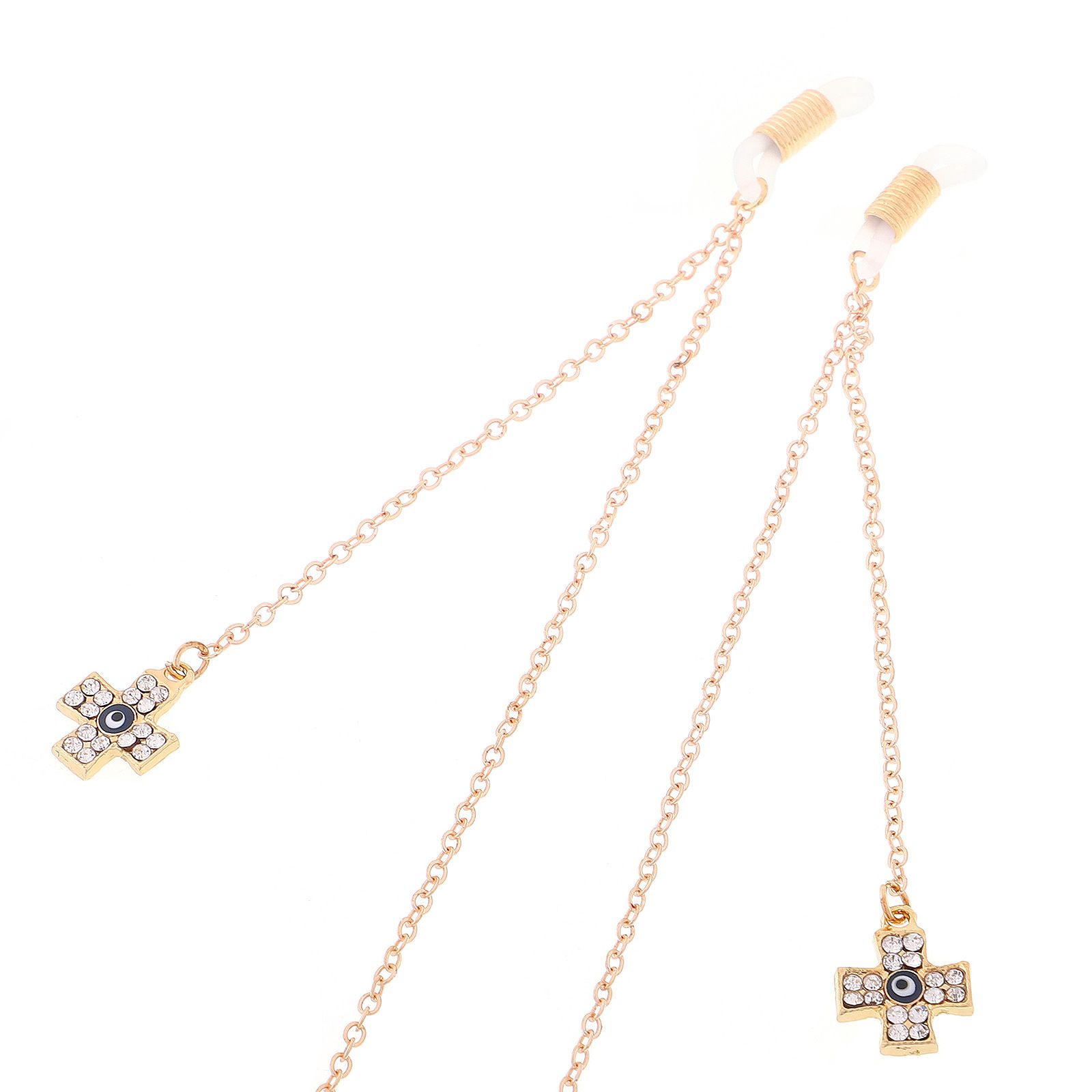 Металлическая нескользящая цепочка золотого цвета, с подвеской-крестик со стразами, для очков и масок GL225