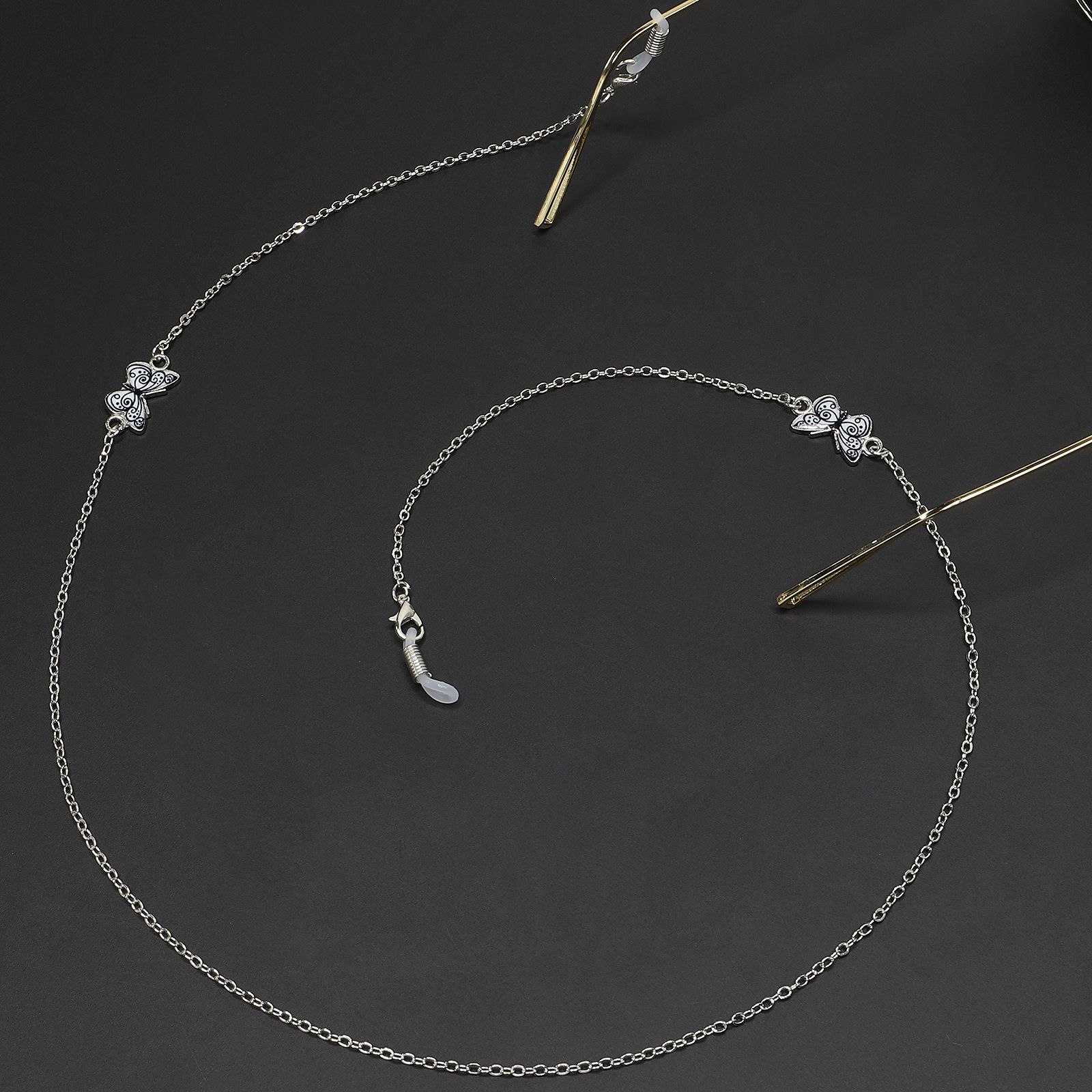 Металлическая нескользящая цепочка серебряного цвета, с бабочкой, для очков и масок GL235
