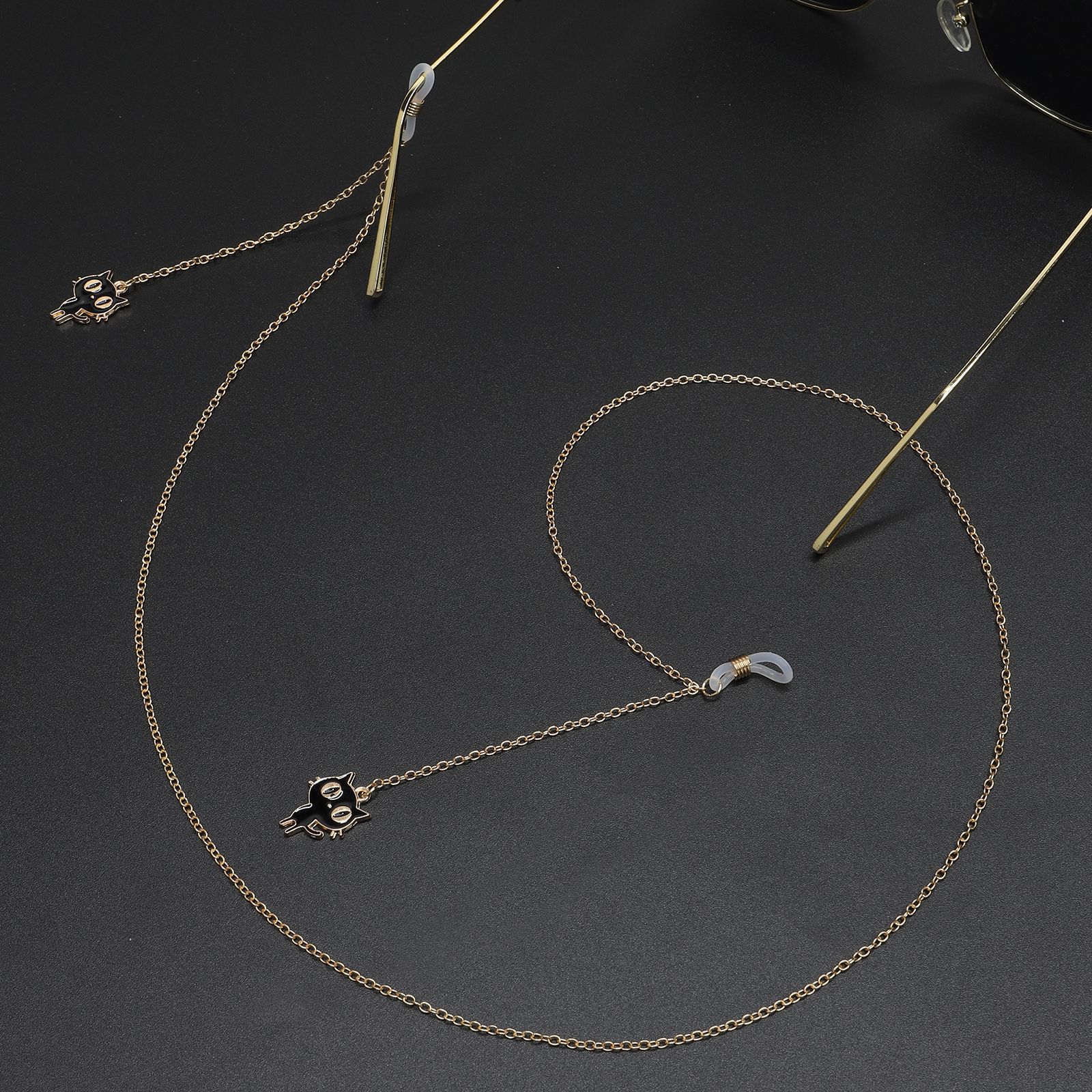 Металлическая нескользящая цепочка золотого цвета, с подвеской котенка, для очков и масок GL247