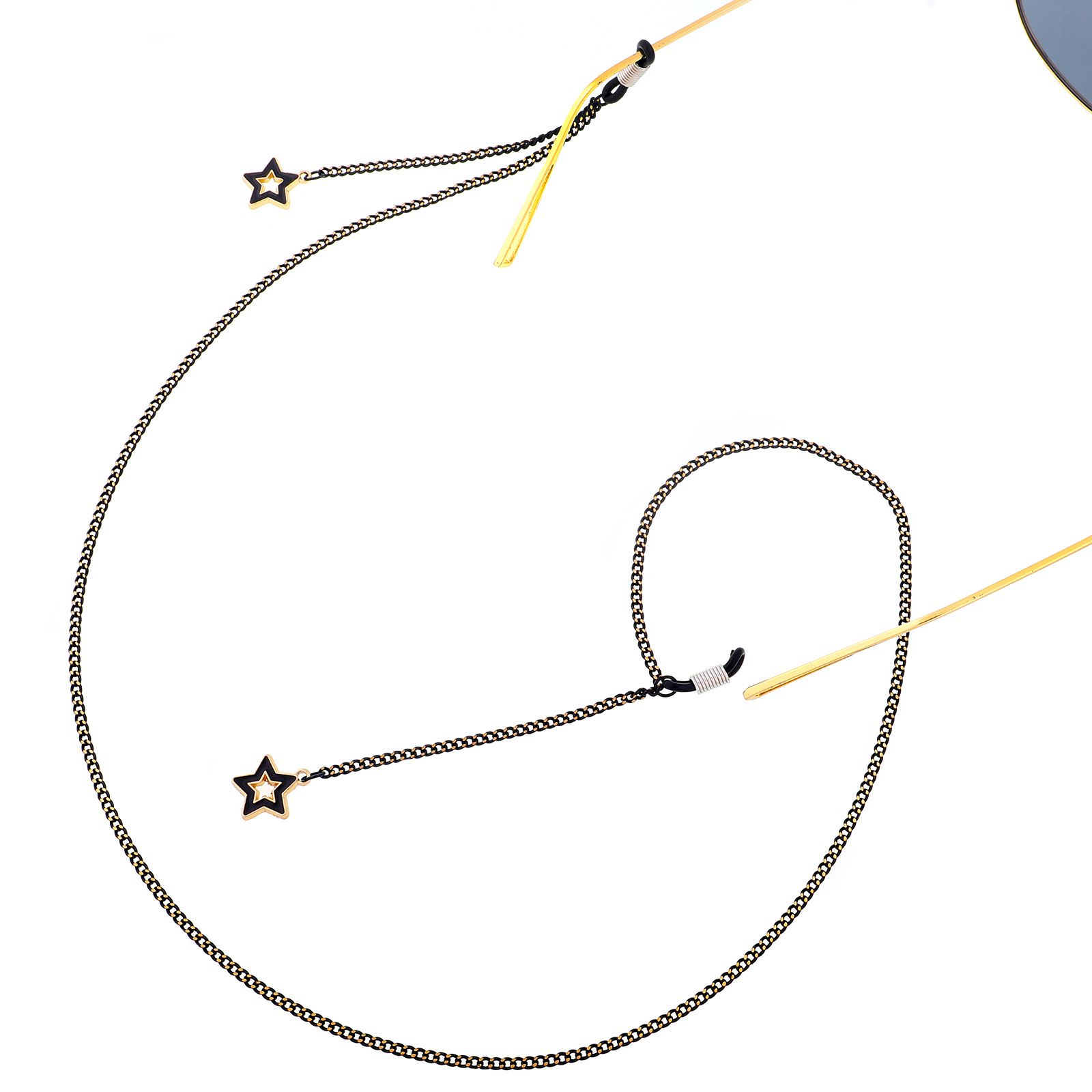 Металлическая нескользящая цепочка черного цвета, с подвеской в виде звезды, для очков и масок GL365