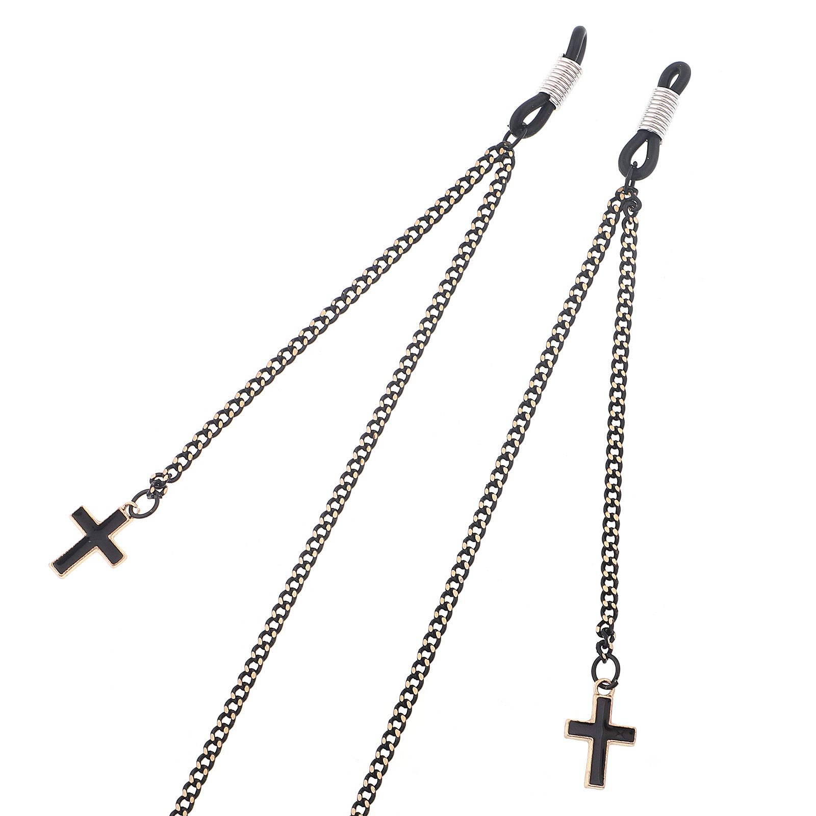 Металлическая нескользящая цепочка черного цвета, с подвеской в виде креста, для очков и масок GL370