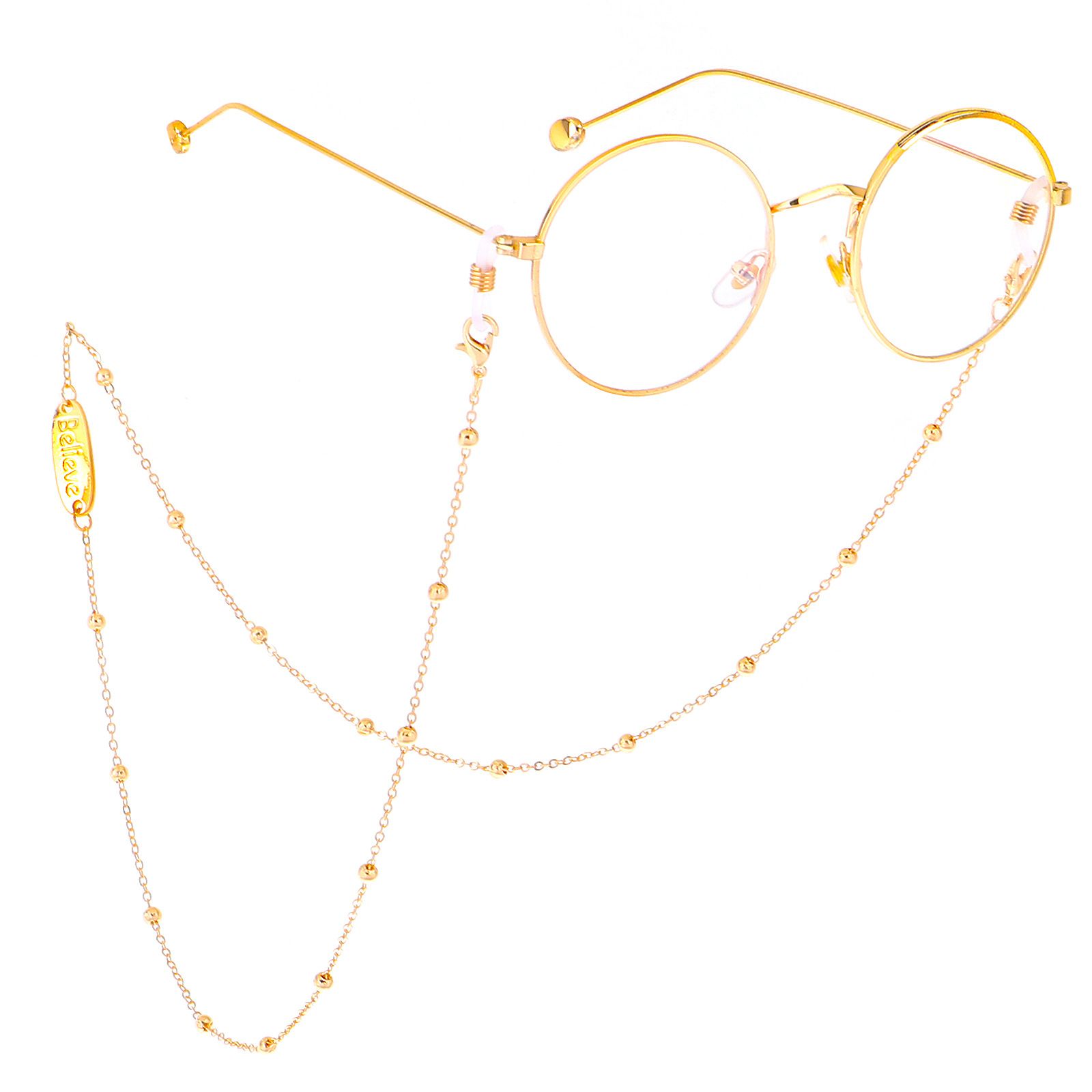 Металлическая нескользящая цепочка золотого цвета, с подвеской Believe и бусинами, для очков и масок GL386