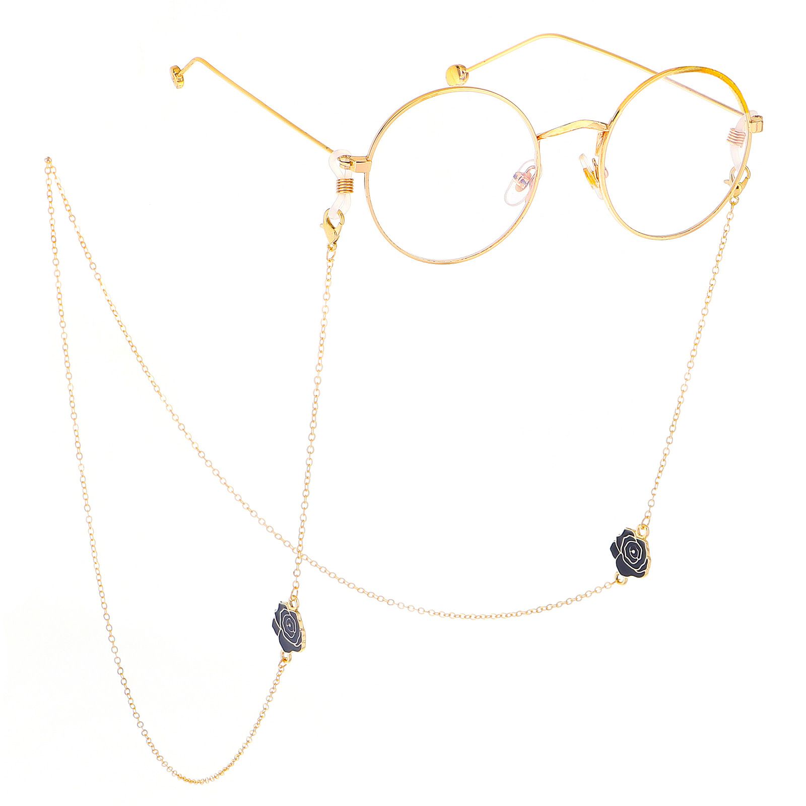 Металлическая нескользящая цепочка золотого цвета, с черной розой, для очков и масок GL394