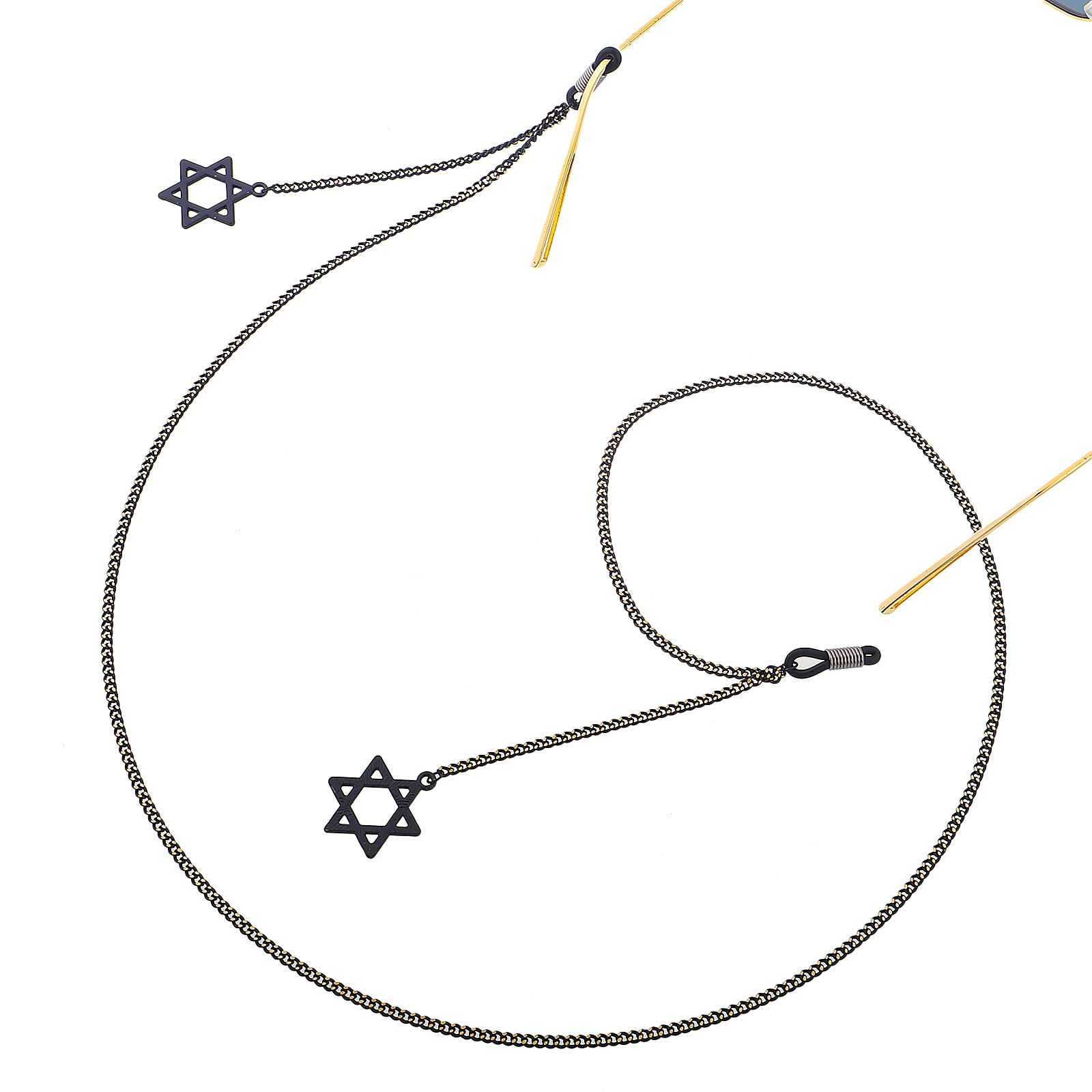 Металлическая нескользящая цепочка черного цвета, с подвеской шестиконечная звезда, для очков и масок GL415