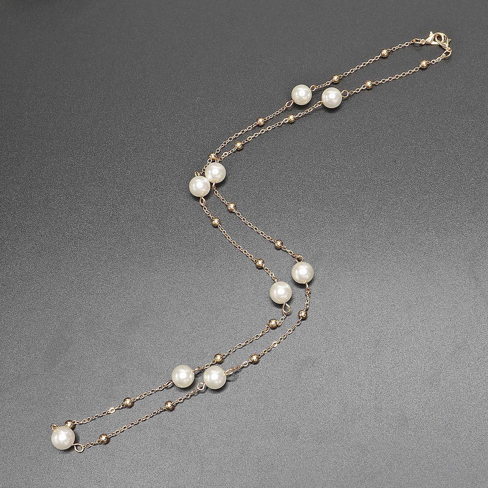 Металлическая нескользящая цепочка золотого цвета, с жемчугом и бусинами, для очков и свитера GL417