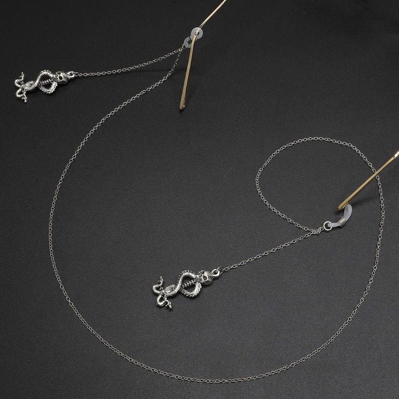 Металлическая нескользящая цепочка серебряного цвета, с подвеской в виде змей с черепом, для очков и масок GL475