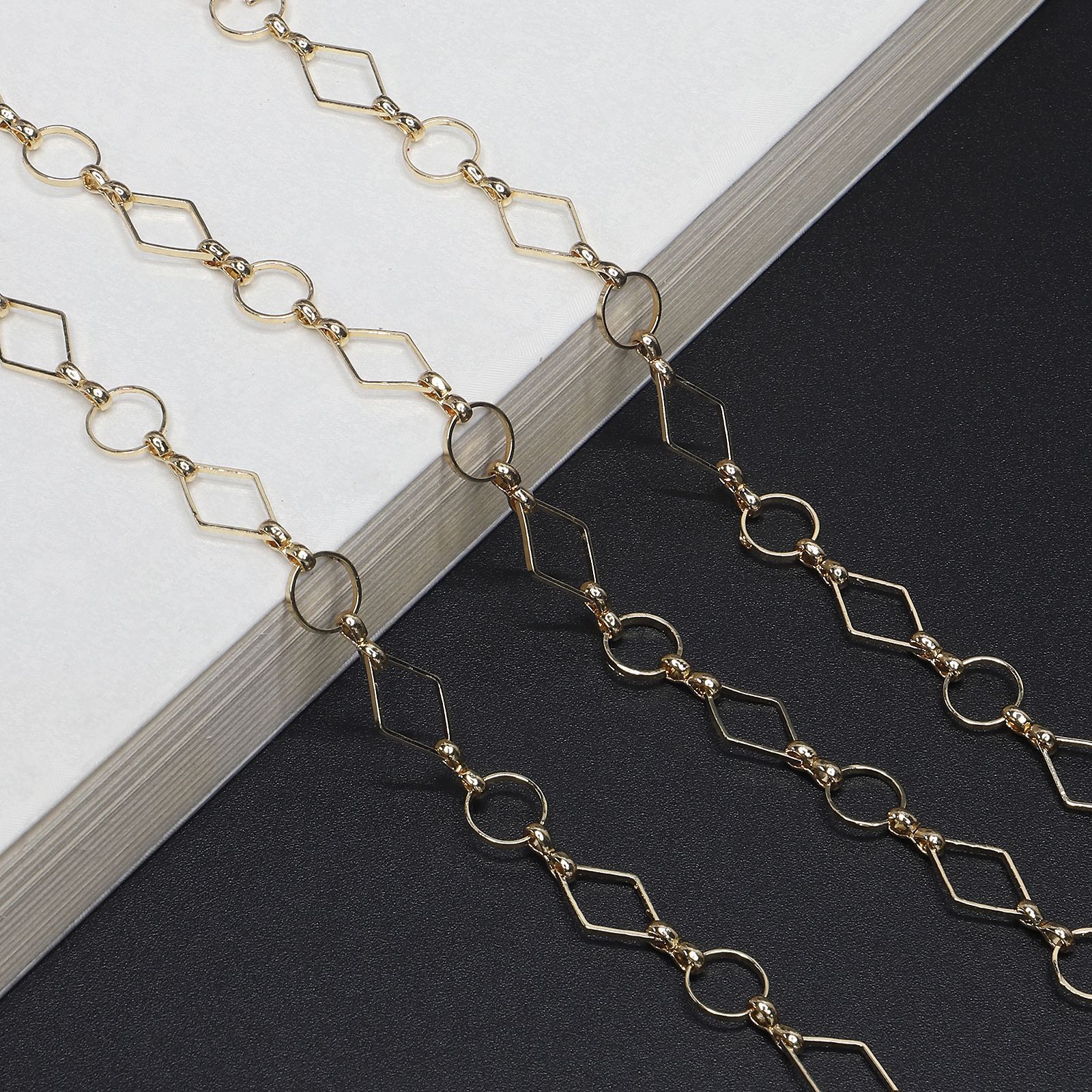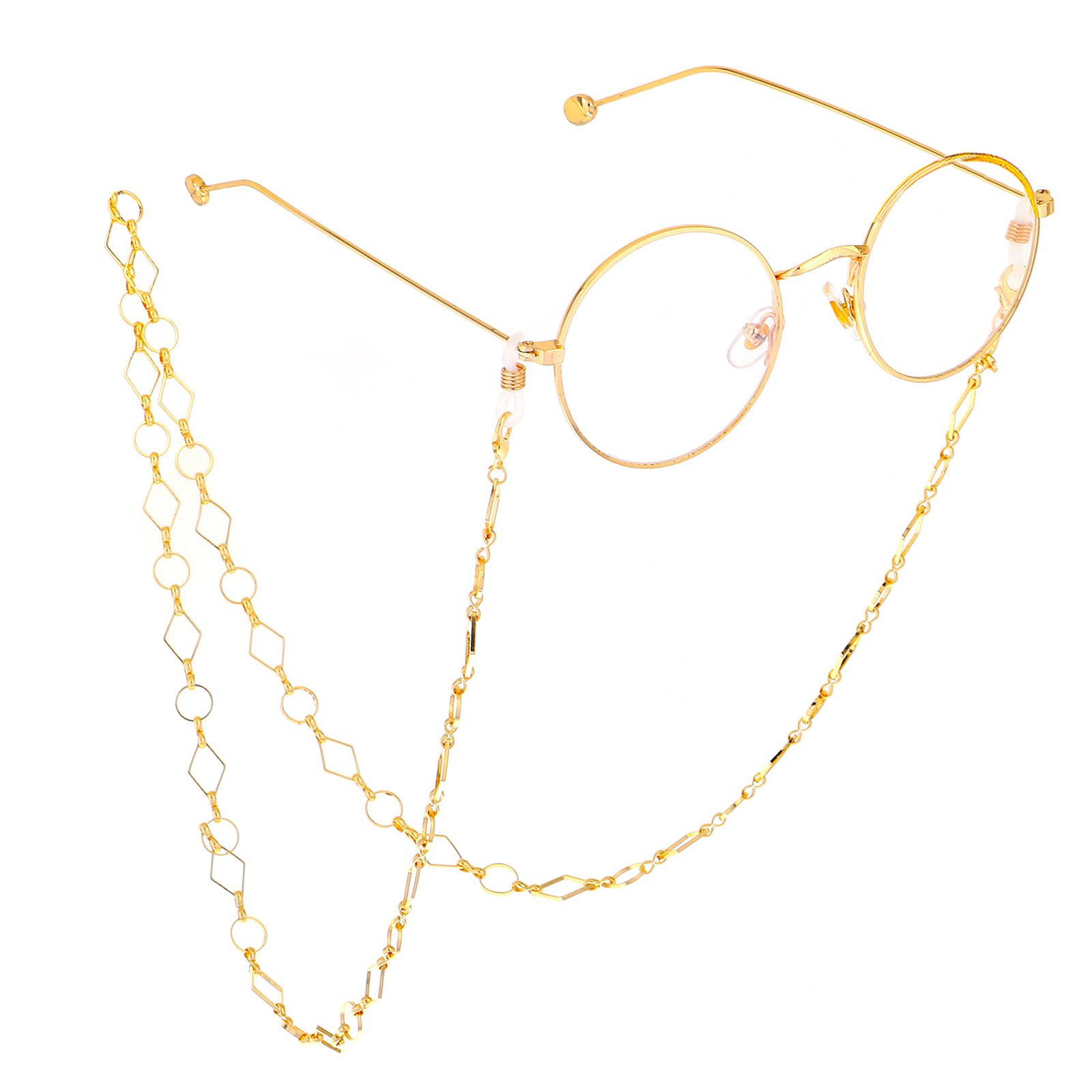 Металлическая нескользящая цепочка золотого цвета, с квадратным бриллиантом, для очков и масок GL486