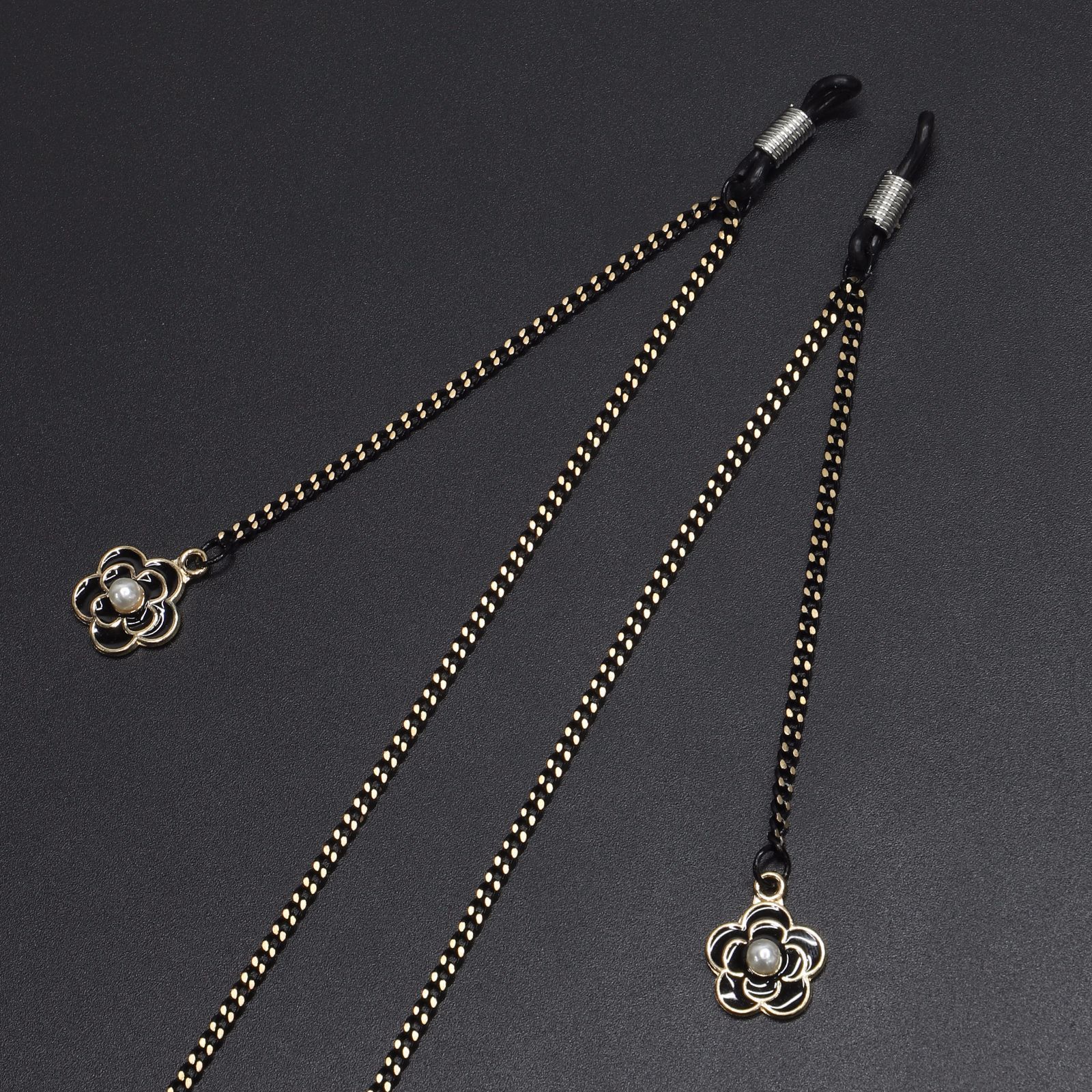 Металлическая нескользящая цепочка черного цвета, с подвеской черный цветок с жемчугом, для очков и масок GL490