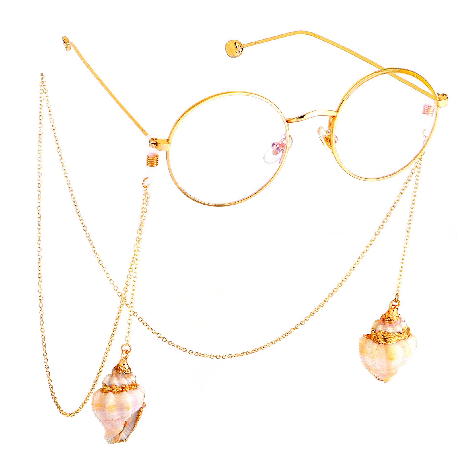 Металлическая нескользящая цепочка золотого цвета, с белой ракушкой, для очков и масок GL506