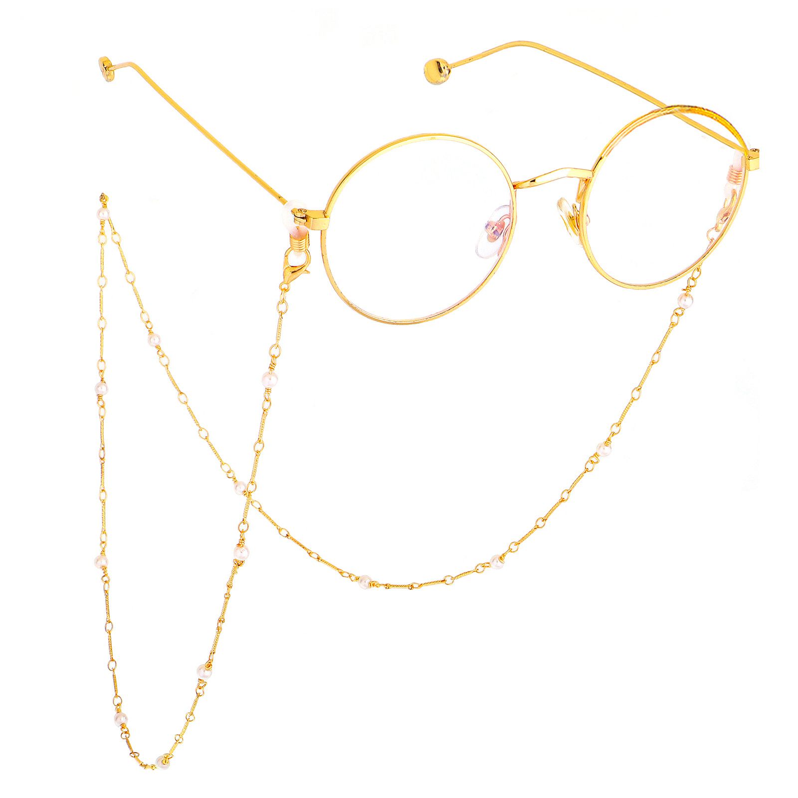 Металлическая нескользящая цепочка золотого цвета, с медными и жемчужными бусинами, для очков и масок GL519