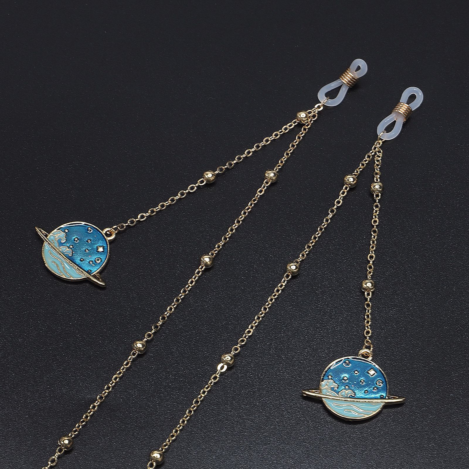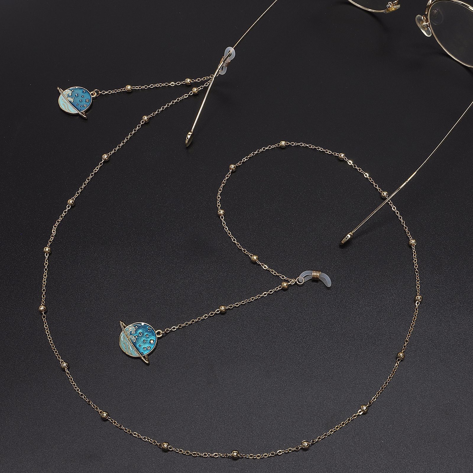 Металлическая нескользящая цепочка золотого цвета, с подвеской звездное небо и бусинами, для очков и масок GL539
