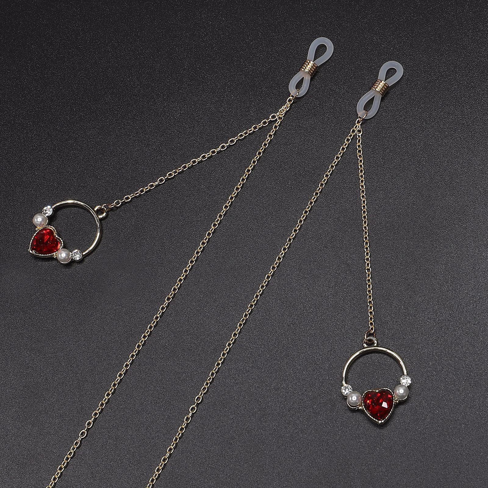 Металлическая нескользящая цепочка золотого цвета, с подвеской в виде сердца с жемчугом, для очков и масок GL570