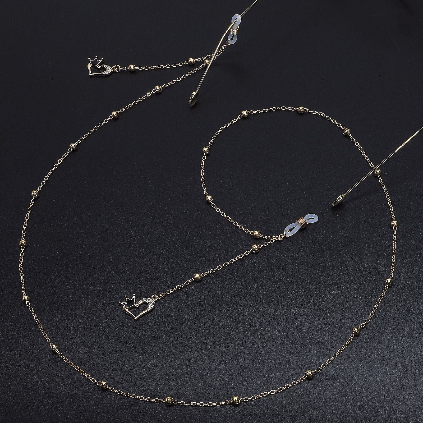 Металлическая нескользящая цепочка, с подвеской в форме сердца со стразами, для очков и масок GL581