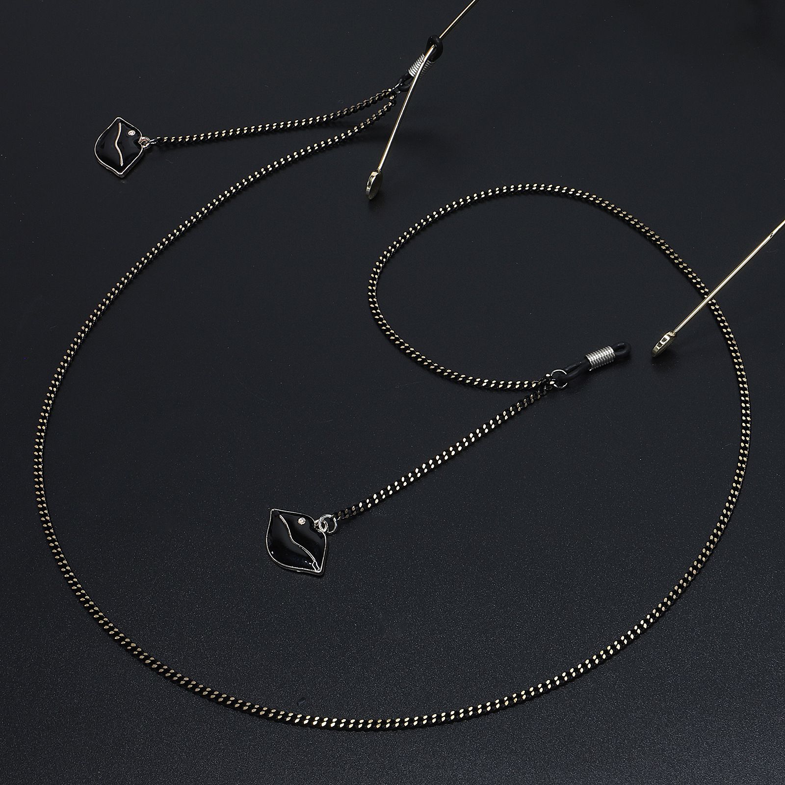 Металлическая нескользящая цепочка черного цвета, с подвеской черные губы, для очков и масок GL595