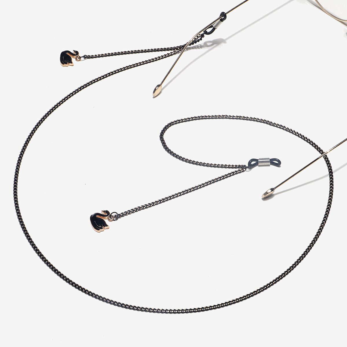 Металлическая нескользящая цепочка черного цвета, с подвеской черный лебедь, для очков и масок GL596