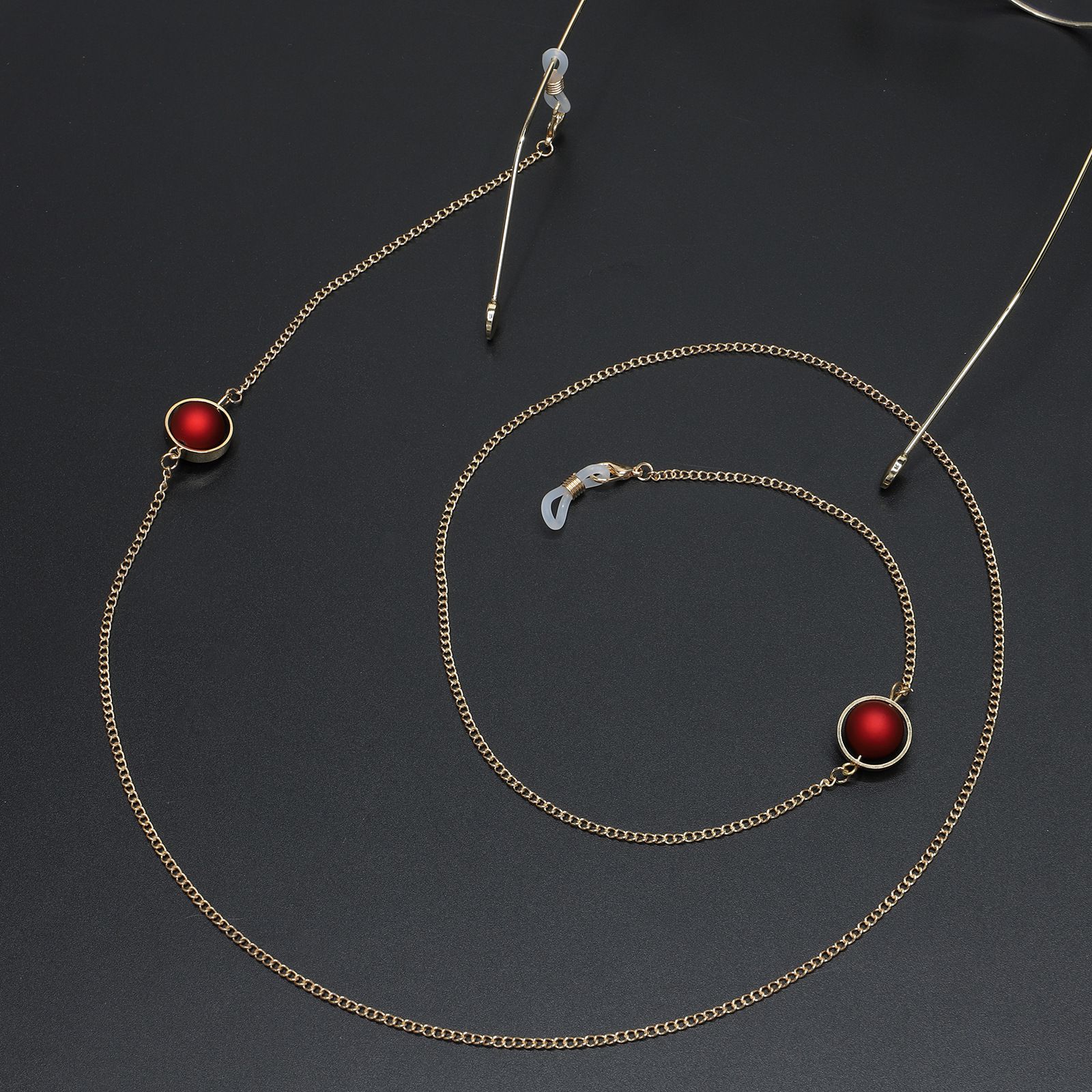 Металлическая нескользящая цепочка золотого цвета, с красными бусинами, для очков и масок GL627
