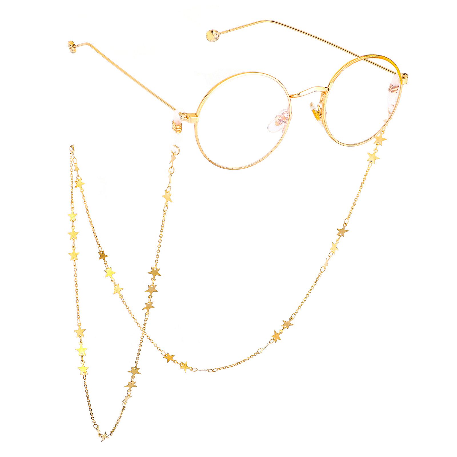 Металлическая нескользящая цепочка, с золотым покрытием и звездой, для очков и масок GL642