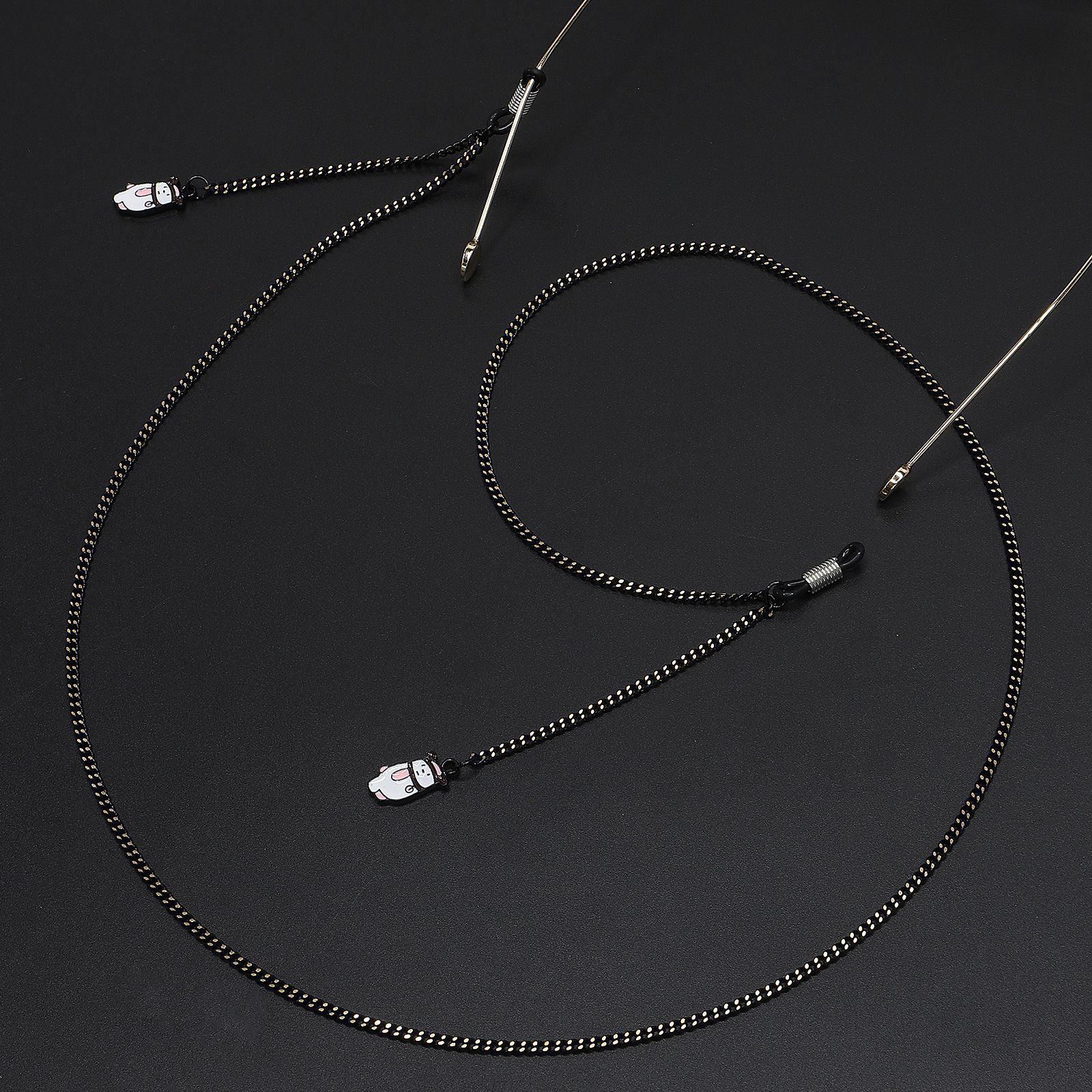 Металлическая нескользящая цепочка черного цвета, с подвеской медведь, для очков и масок GL647